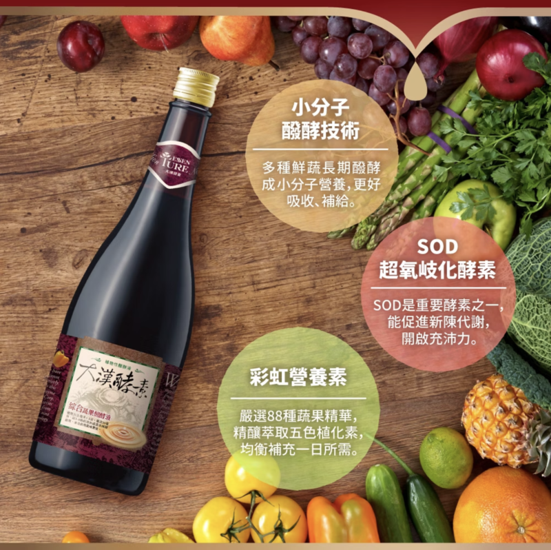 • 萃取自 88種蔬果與植物原料 ,包括鳳梨、番茄、蘋果、葡萄、胡蘿蔔、火龍果、藍莓等