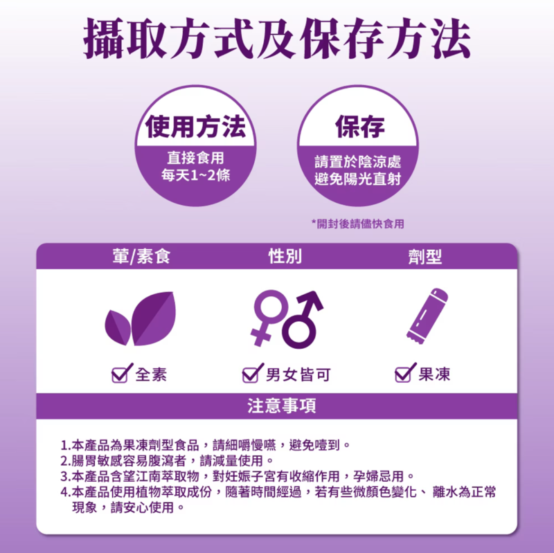 • 果凍劑型,方便攜帶,適合忙碌生活中快速補充酵素
