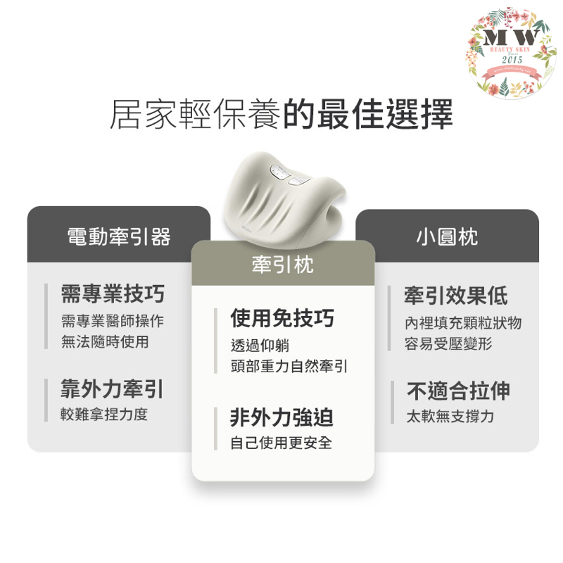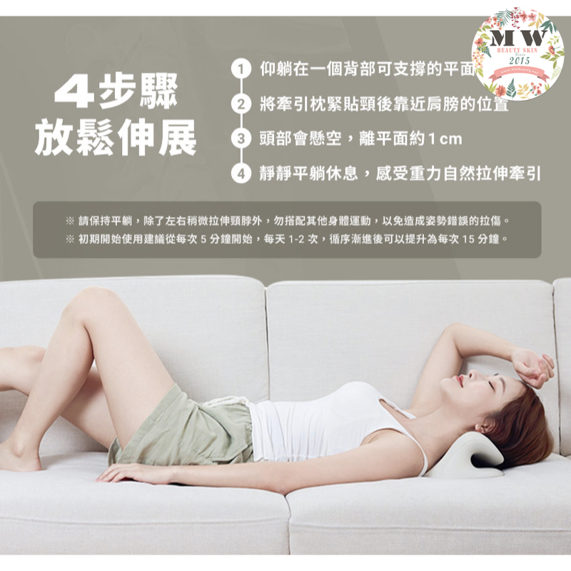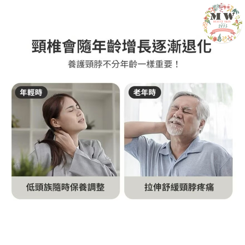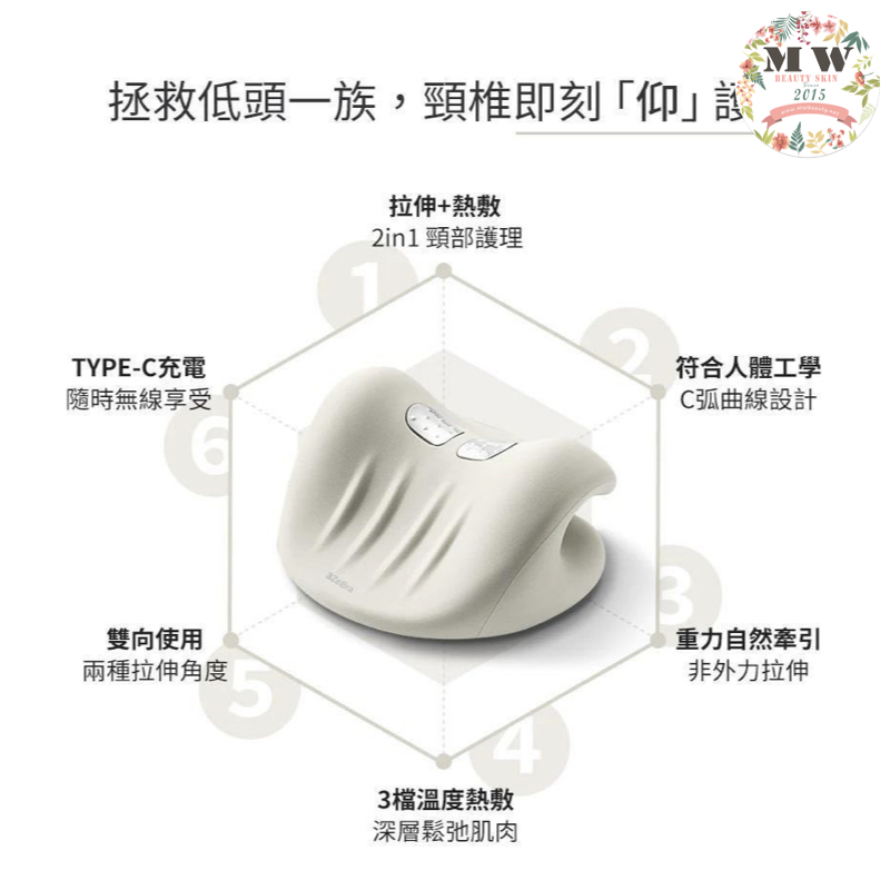 導致肩頸有問題出現,這款頸椎熱敷牽引枕,除了可拉伸肩頸外還有熱敷的功能,二合一護理頸部,符合人體工學,C 弧曲線設計。