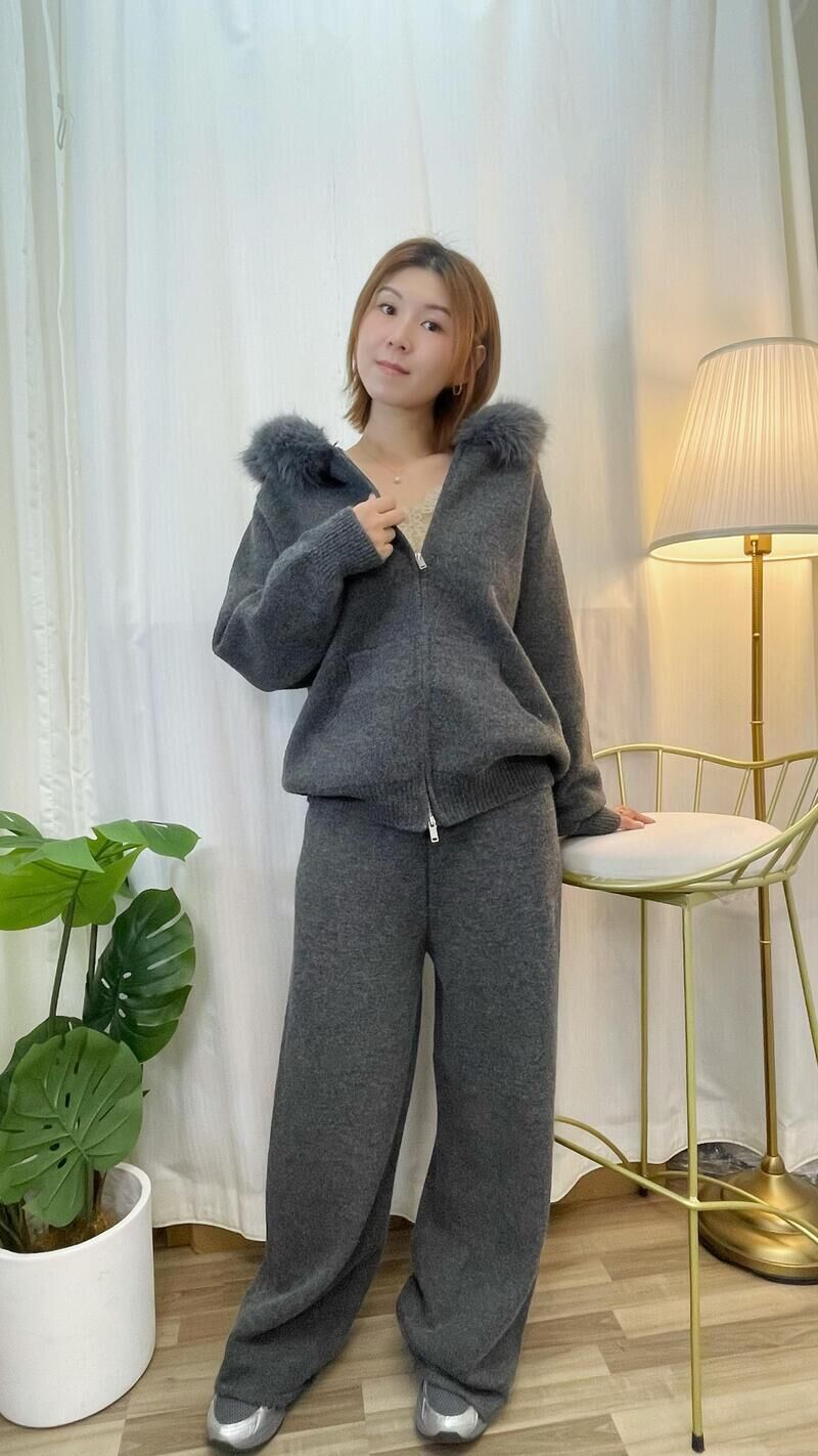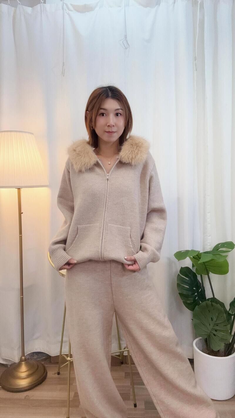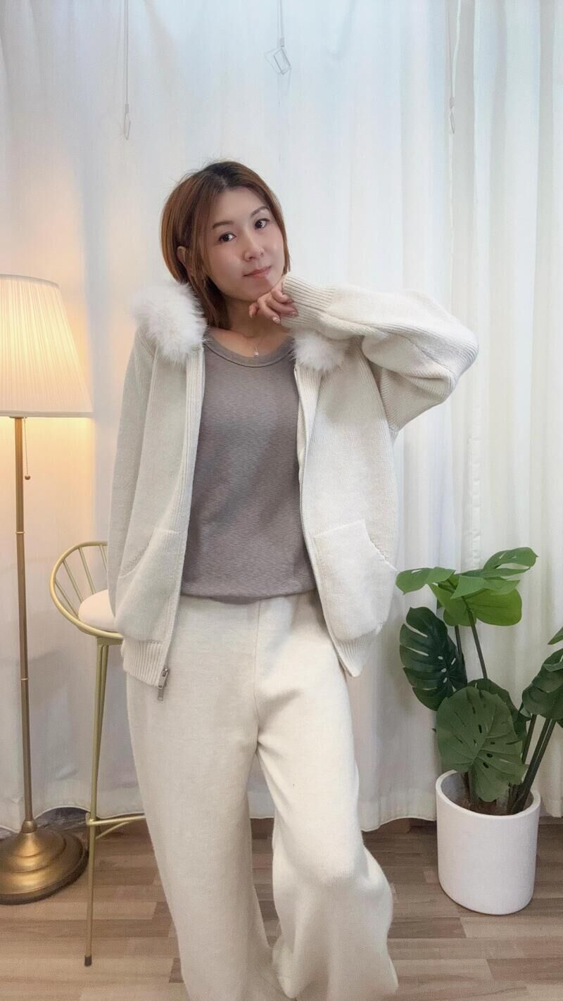 毛毛帽拉鍊外套套裝