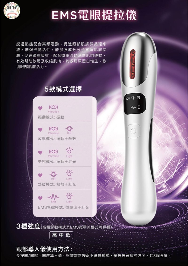 • EMS電脈提拉儀(含Vibration、Hot、Light、EMS模式,中國製造,限量贈品,不設保養期)