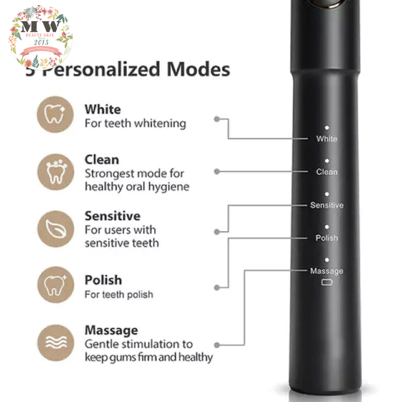 Bitvae E11提供5種模式選擇,不論是想美白、敏感牙齒,還是深層清潔都可以做到。