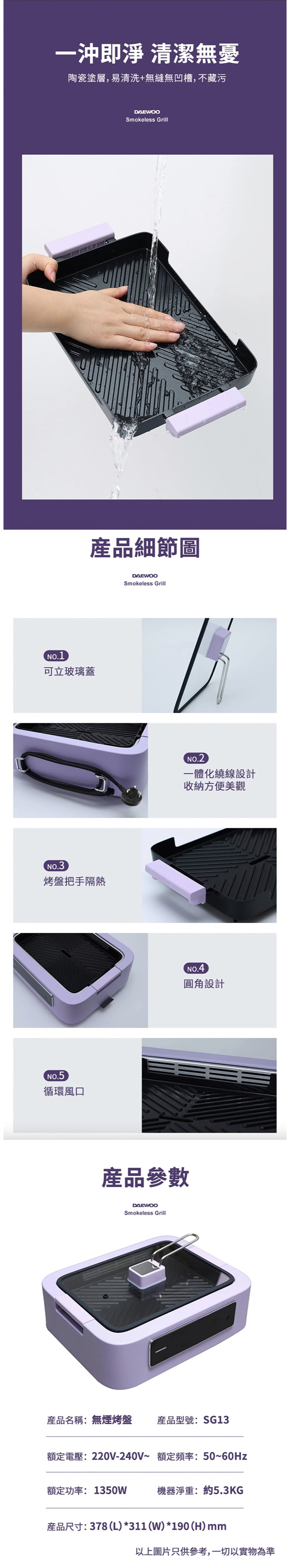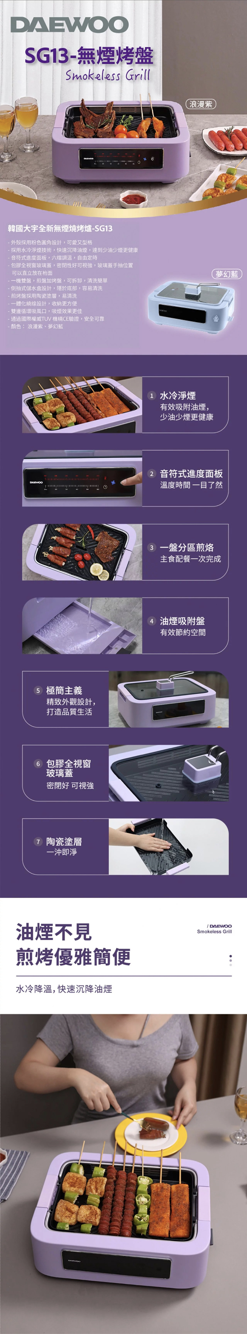 韓國大宇推出最新的 SG13 無煙烤爐,外型以粉色圓角設計,小巧實用,音符式面板調溫,