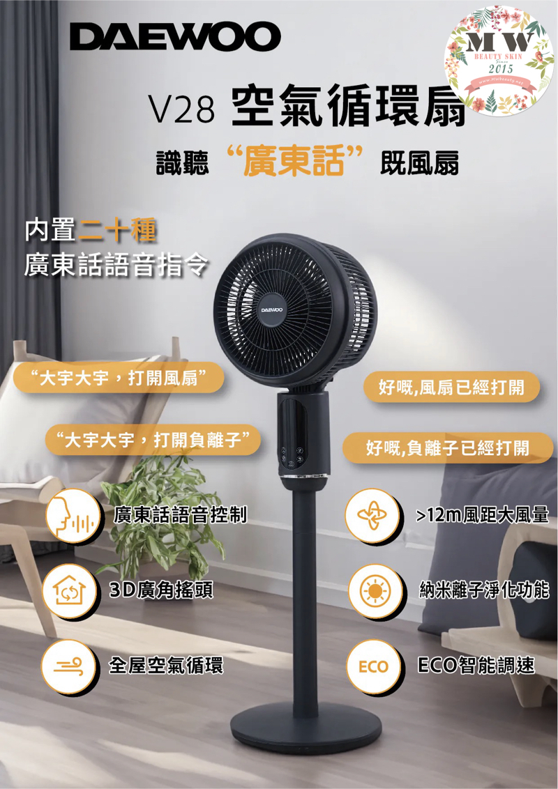 DAEWOO 最新推出的V28 智能循環扇, 一部可以用廣東話聲控的智能語音風扇,