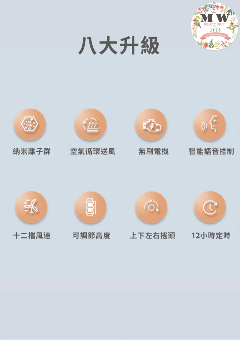 同時,具備納米離子淨化功能,風扇採用直流摩打及ECO 智能調速,