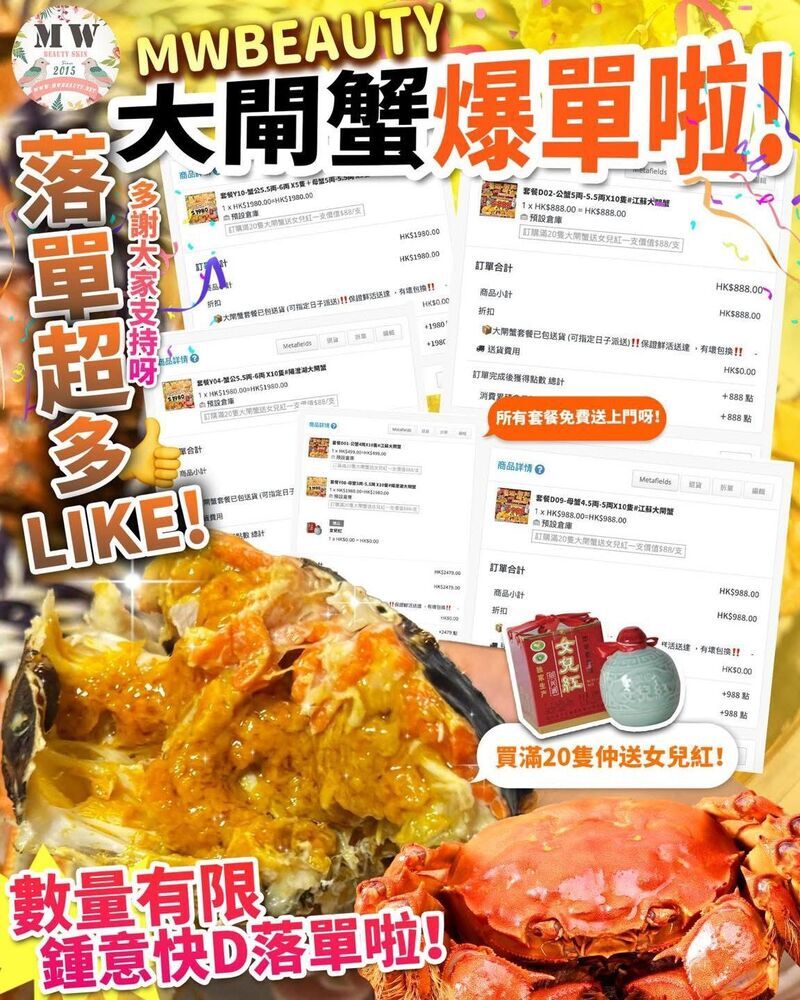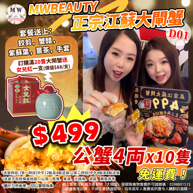 🔥訂購滿20隻大閘蟹送女兒紅一支價值$88/支 (只限單一訂單同一時間收貨地址) 🔥保證鮮活‼️有壞包換‼️