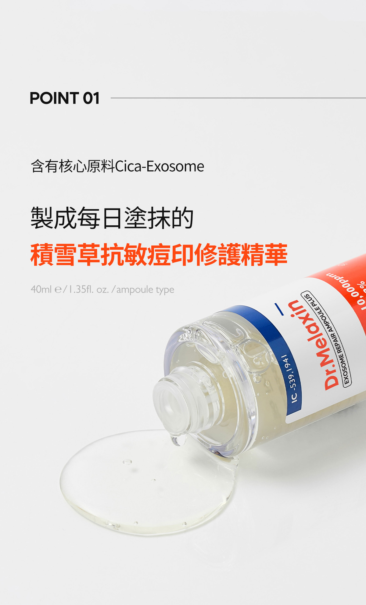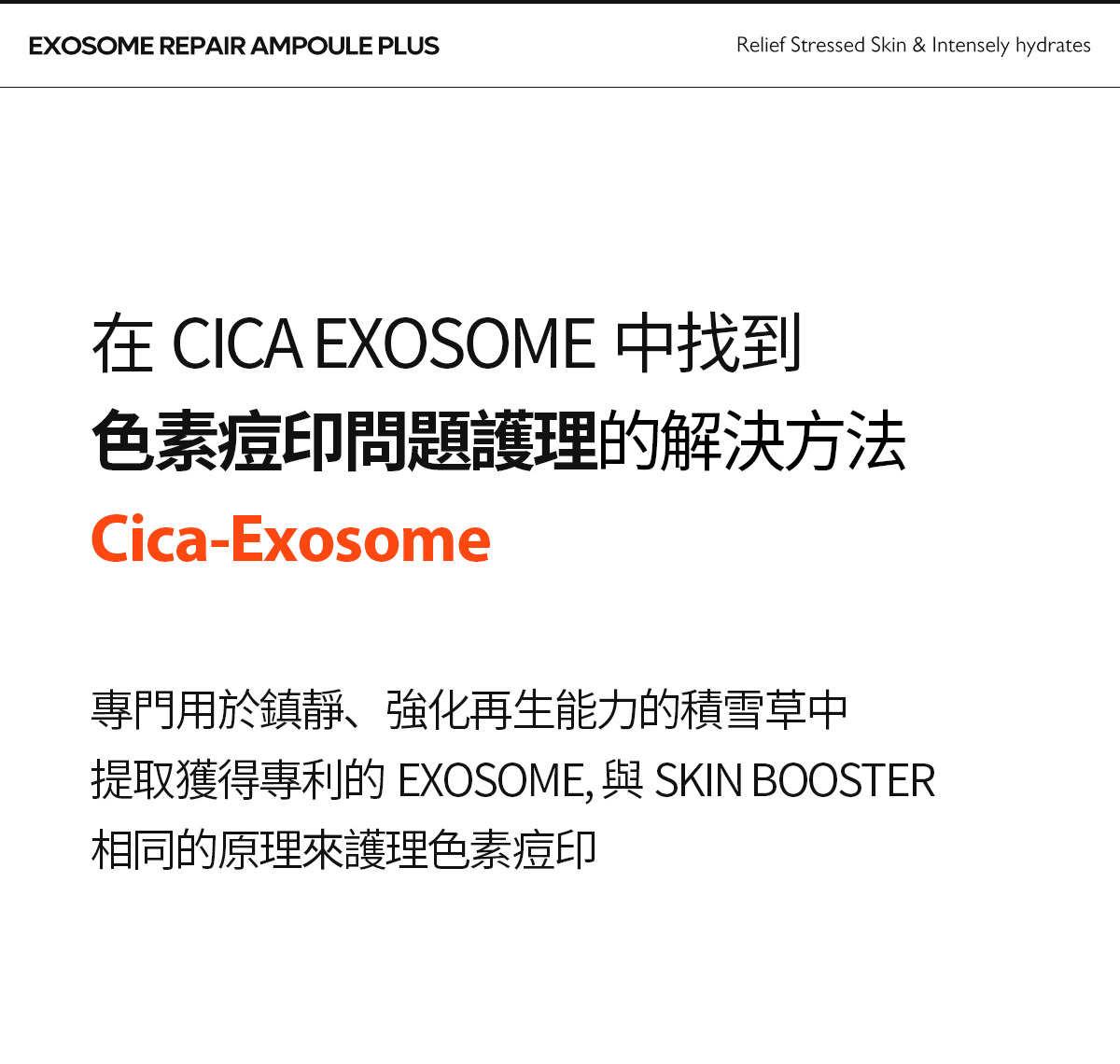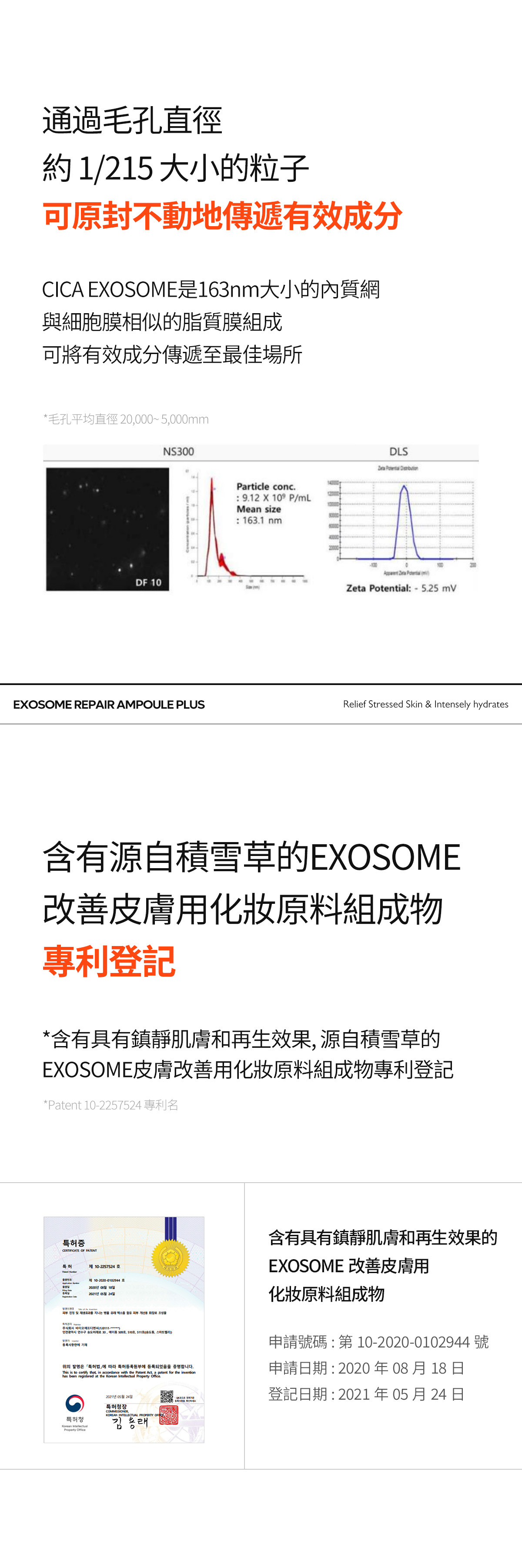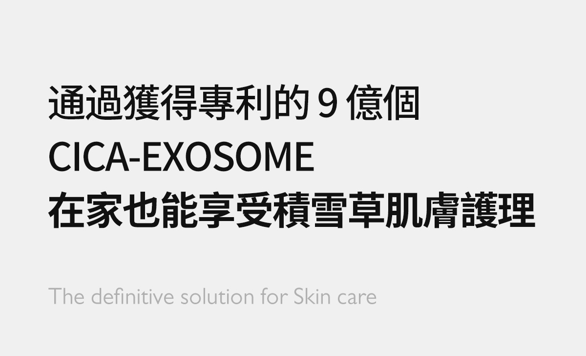 · 蘊含10,000 ppm和美容院Skin Booster相同的專利成分CICA-EXOSOME