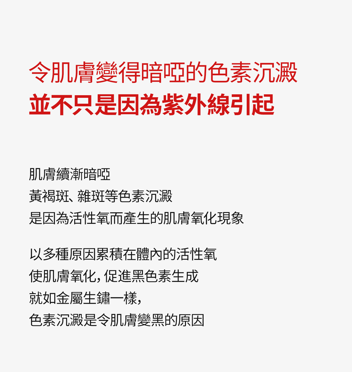 【利用抗氧化功效比維生素強6000倍的抗氧化原料,進行祛斑/美白護理】