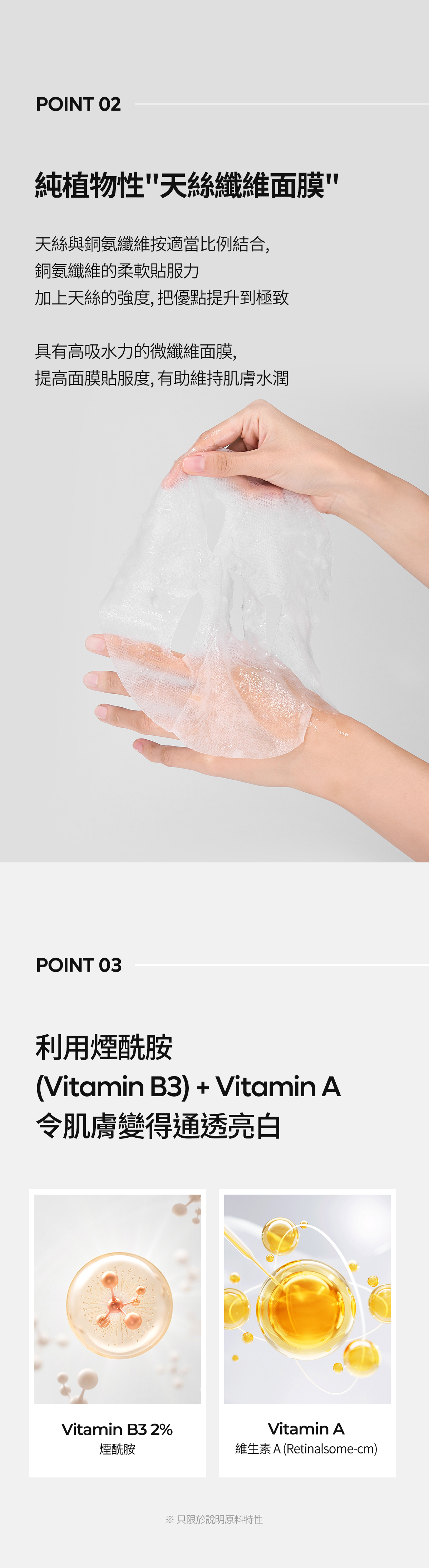 · 利用2% 維生素B 和維生素A令肌膚通透亮白