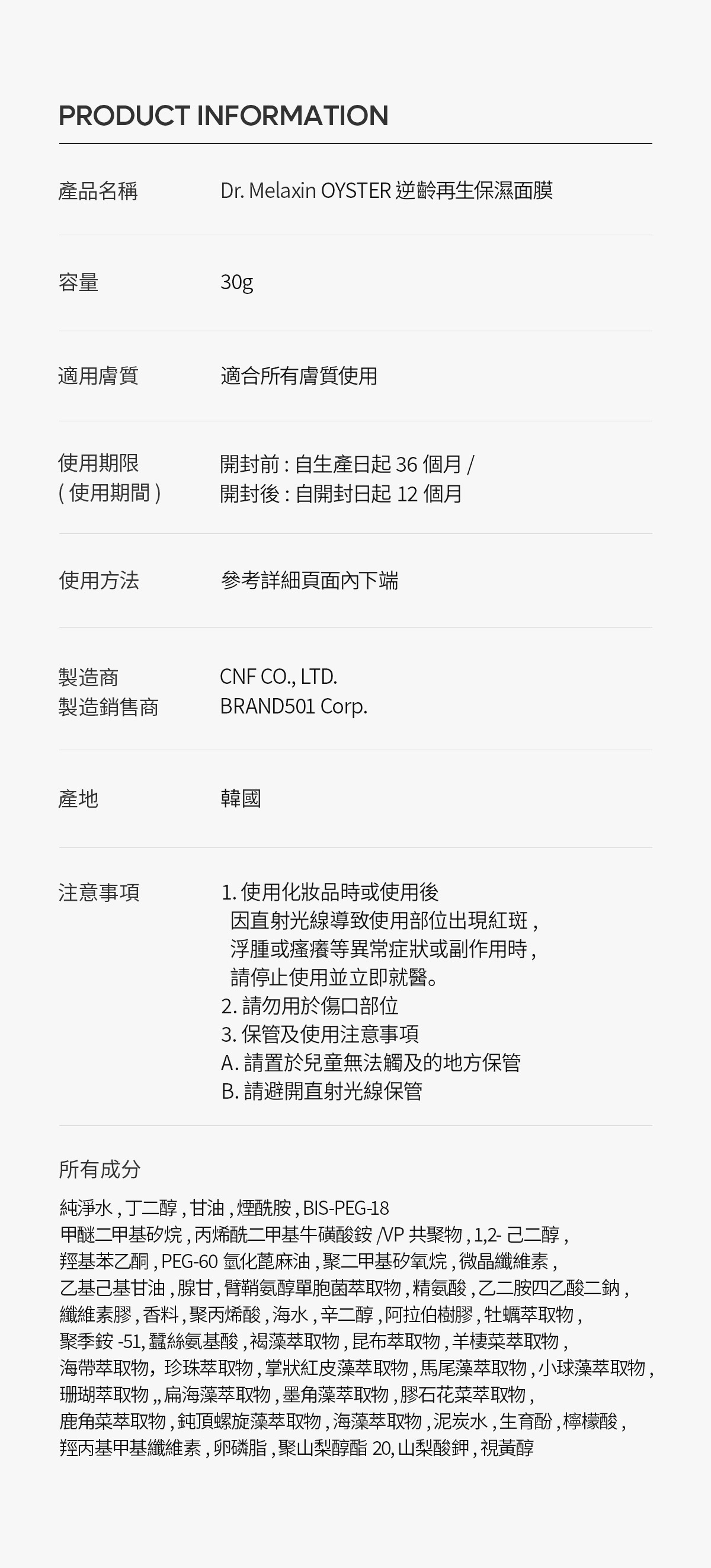 · 獲得韓國食藥處告示認證的美白 • 改善皺紋雙重功能性化妝品