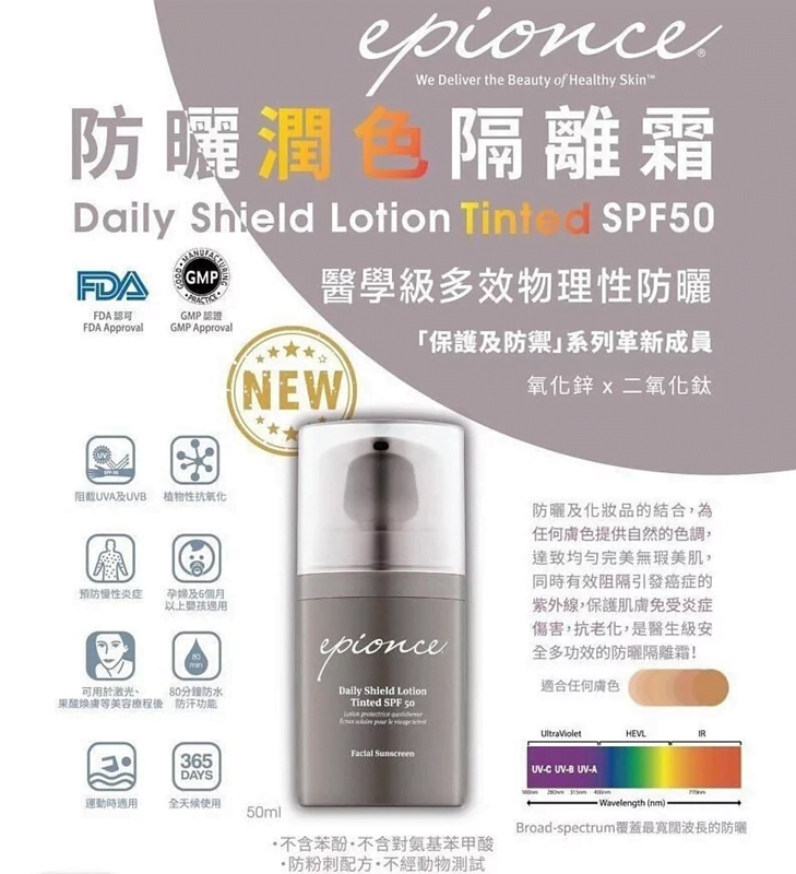 Epionce 防曬含有兩個國際認可防曬成份《氧化鋅 + 二氧化鈦》,係安全度極高物理成份