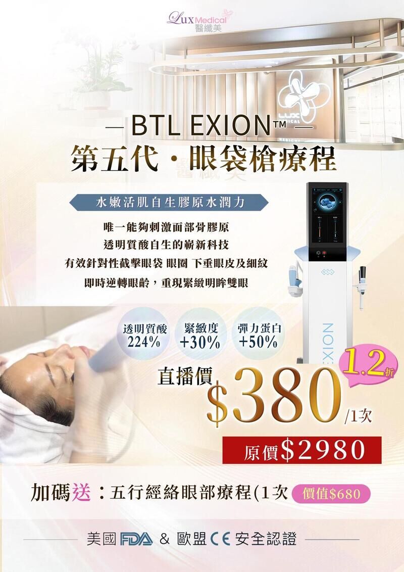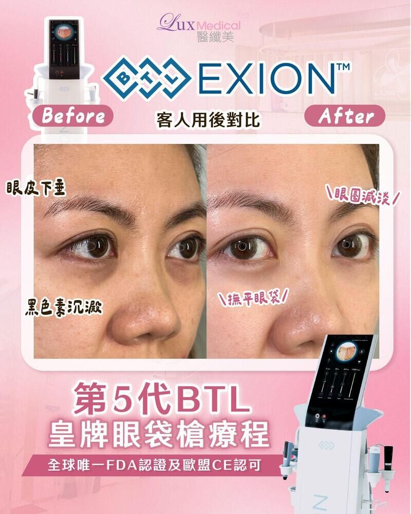 📣【BTL 膠原眼試做價$3xx】熊貓眼、大眼袋救星🐼🐼🐼 隔空「熨平」眼周肌膚! 最新 第5代 BTL EXION 威力全開,幫妳直接「熨平」眼袋,還原自信明亮雙眸!