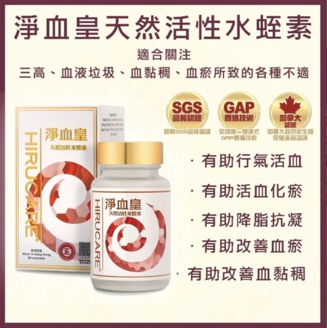 淨血皇天然活性水蛭素(60粒)【 落單即送目健養目修複眼罩 1個