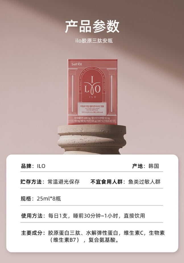 ILO Type 1 膠原蛋白安瓶以「肌膚彈力充電劑」為概念,嚴選分子量僅500道爾頓的深海魚鱗