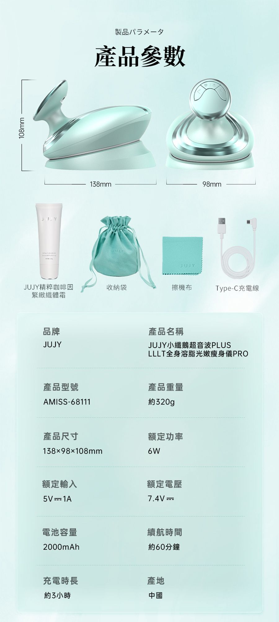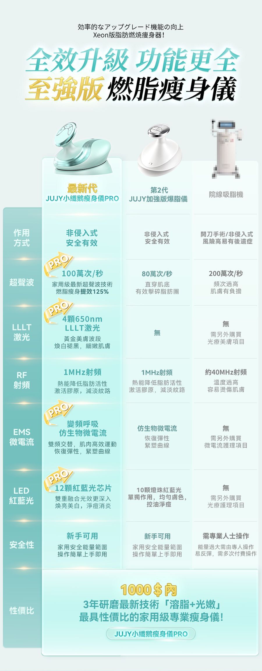 日本JUJY|小纖鵝超音波PLUS LLLT全身溶脂光嫩瘦身儀 PRO (原裝行貨一年保養 )X1