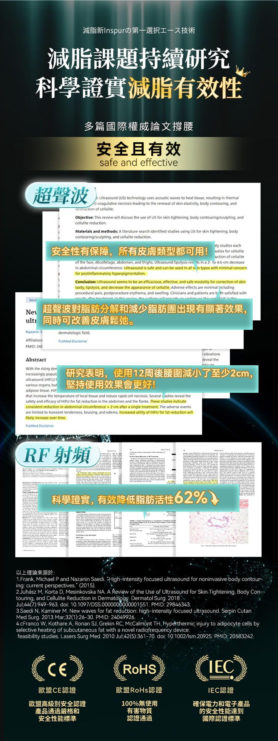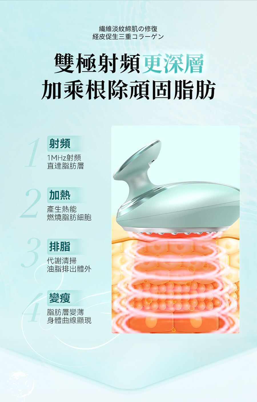 2.1MHz RF射頻,滅活脂肪細胞活性,高效燃脂,減淡纹路。