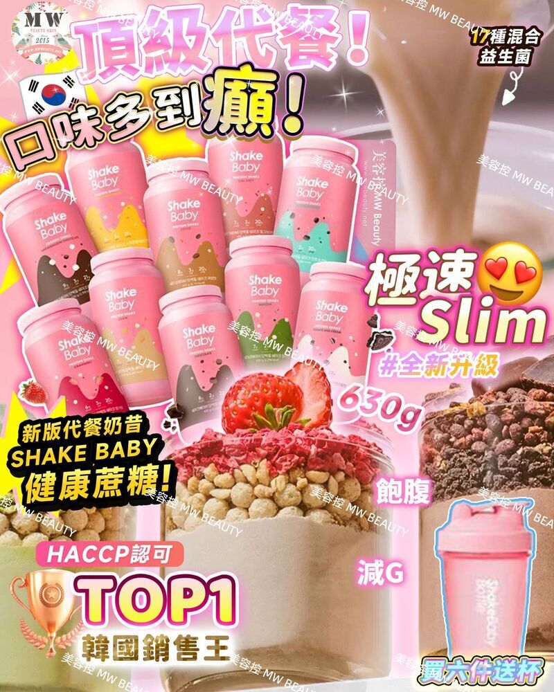 全新升級版 韓國超火🔥SHAKE BABY PROTEIN SHAKE 新版代餐奶昔 (多款口味)|糖分減少|魚膠原蛋白益生菌玻尿酸維生素|極速減重 ⭐️買六件送杯