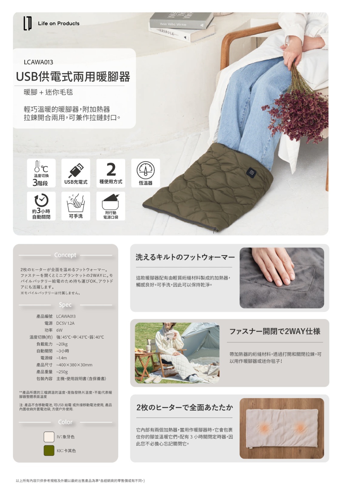 日系簡約設計的的暖腳器,共3段溫度恆溫系統調節最高達約45℃,