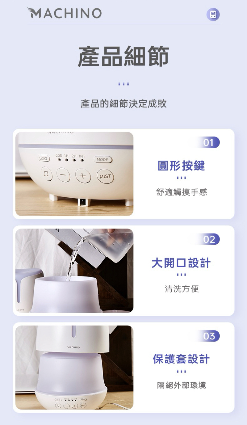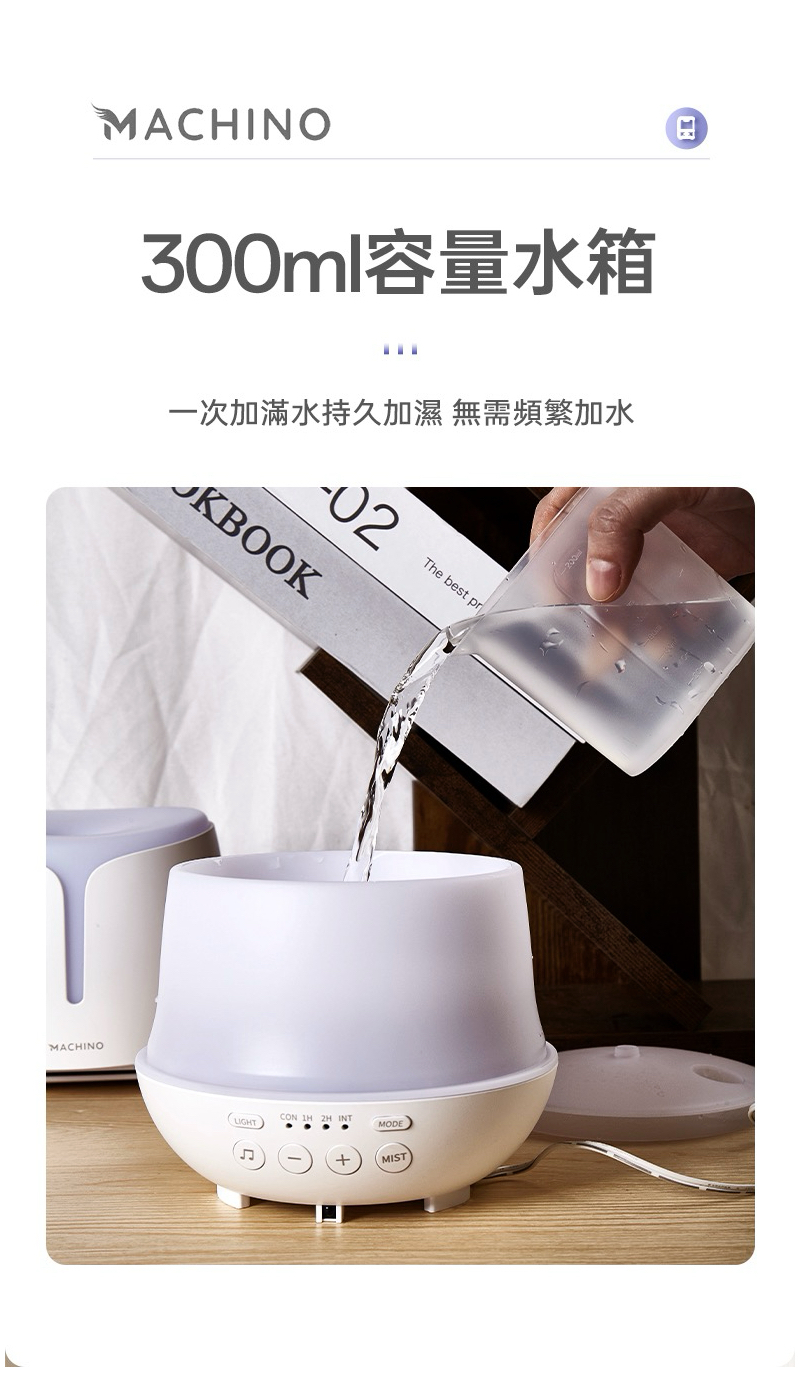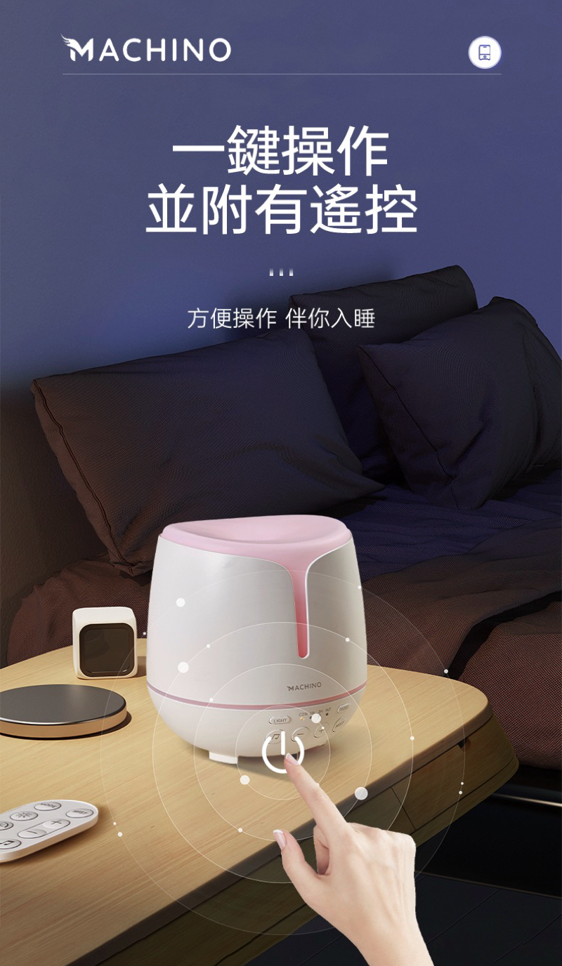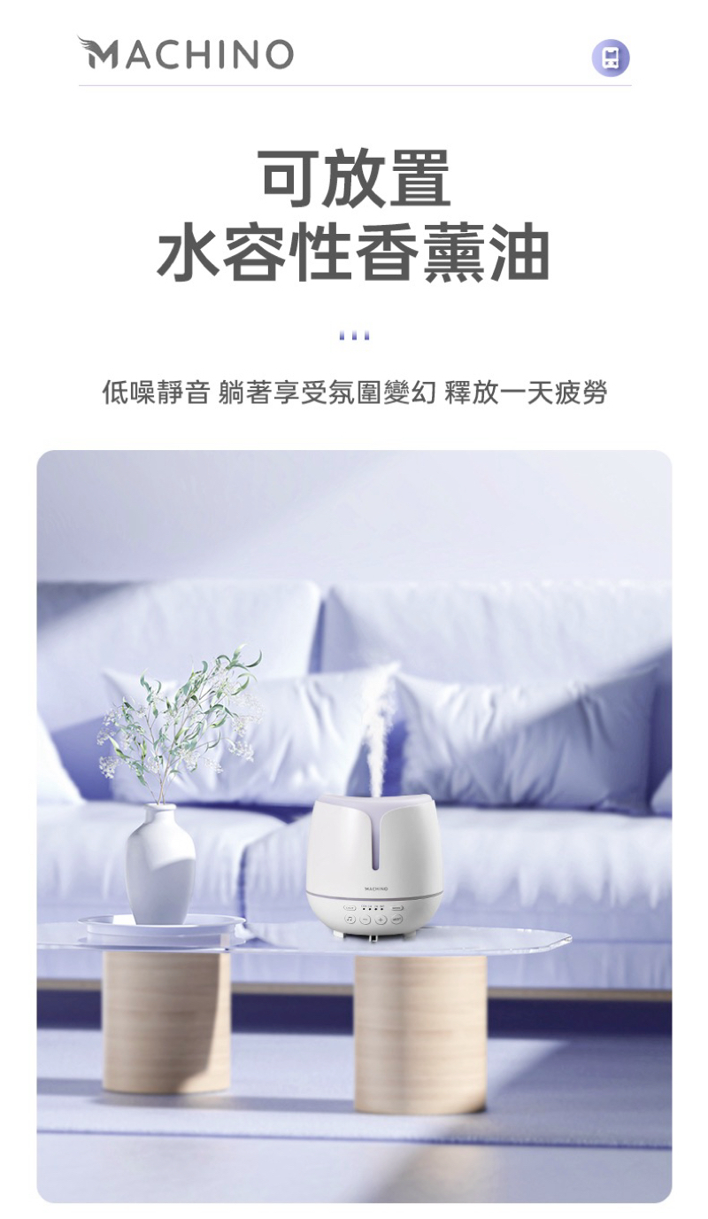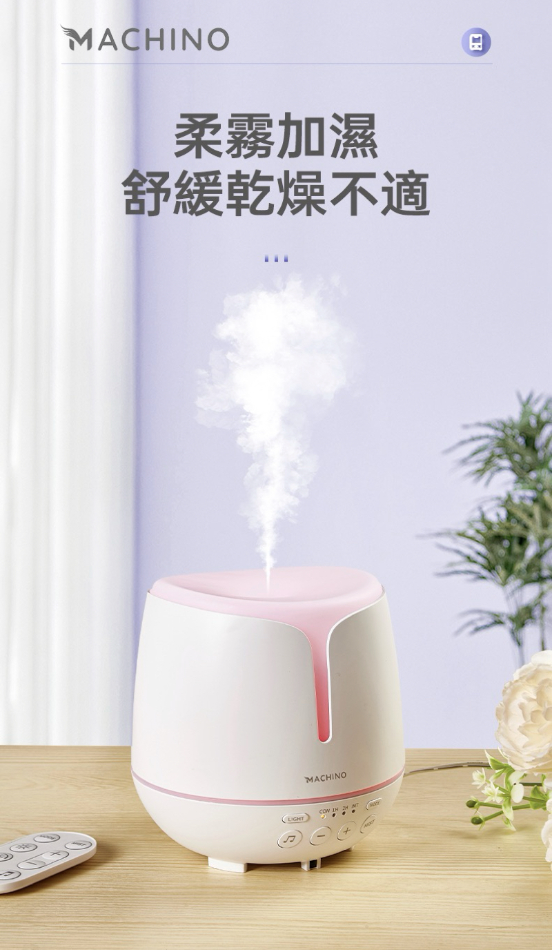 Machino 新出Q6多功能香薰加濕機,除了加濕外,附有七彩燈光效果,增添氛圍。