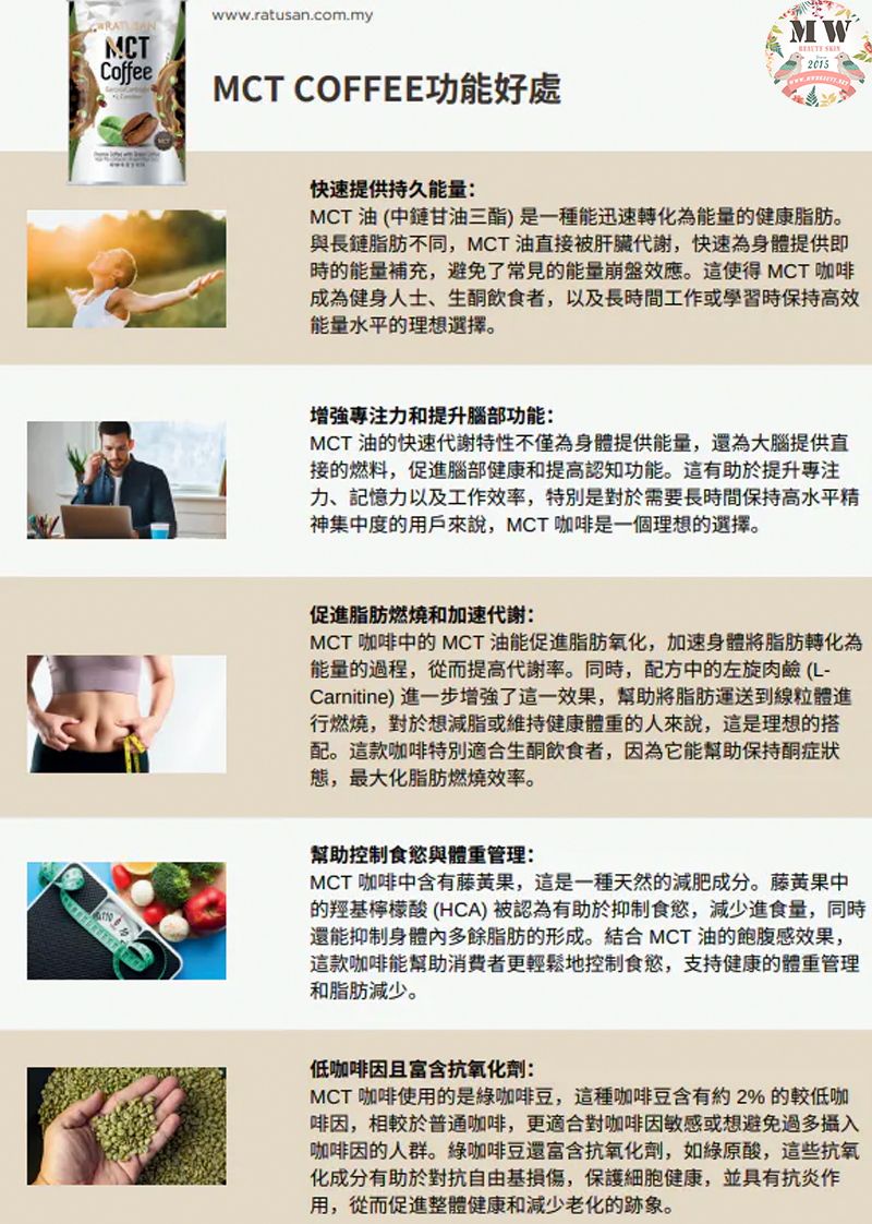 非常適合生酮飲食者或需要持續能 量的人,RATUSANMCT咖啡是積極健康生活的理想選擇。