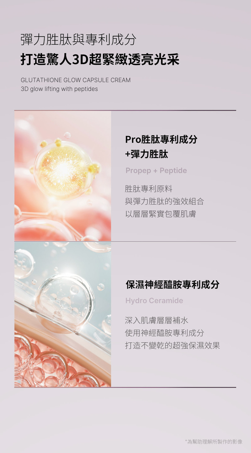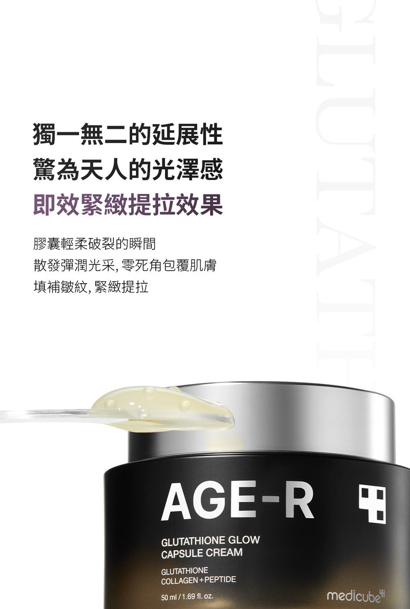 這款乳霜採用 99.4% 純度的穀胱甘肽膠囊配製而成,可為肌膚帶來光澤和豐盈