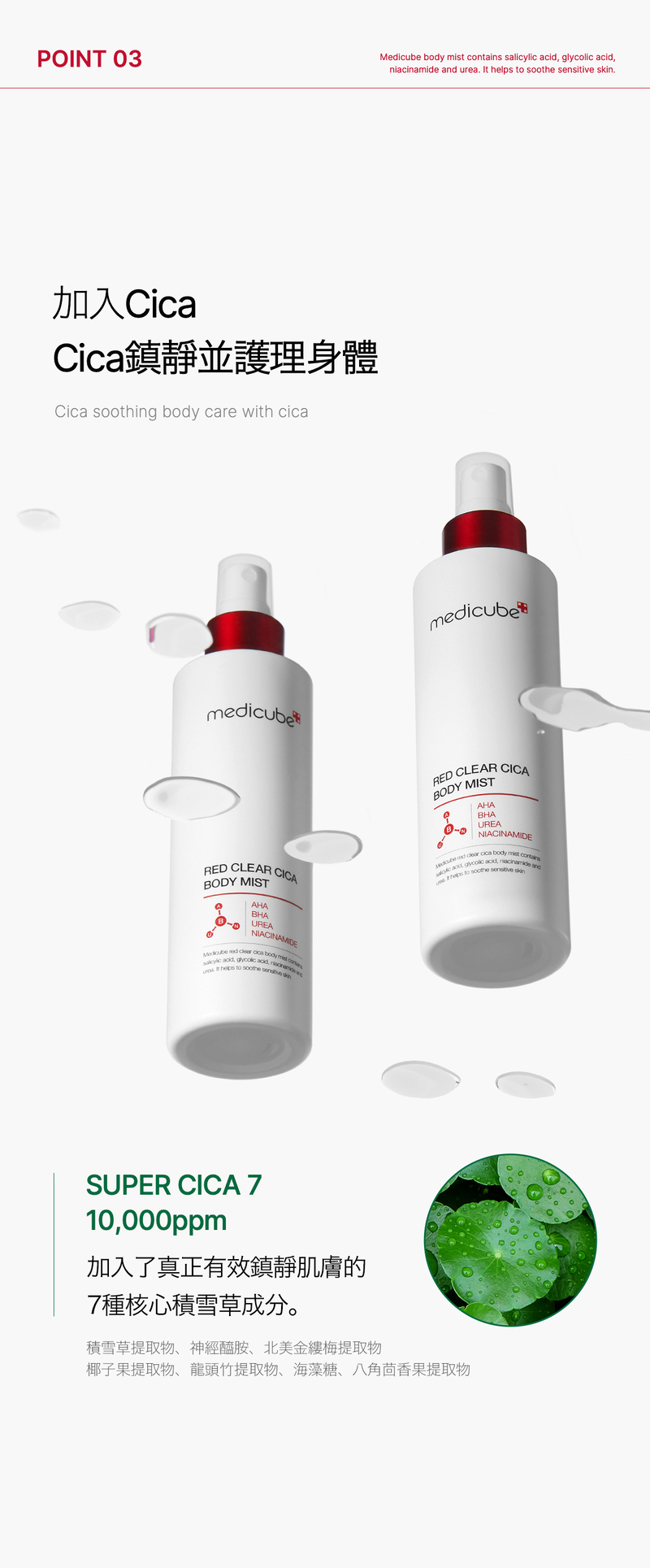 👉🏻積雪草提取物,舒緩肌膚發炎和紅腫