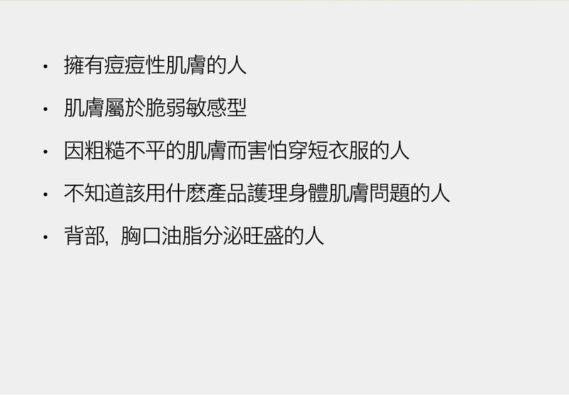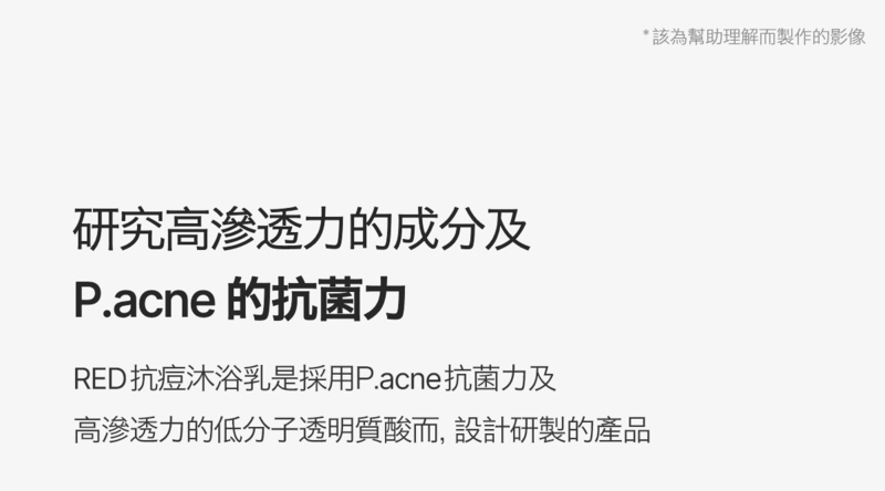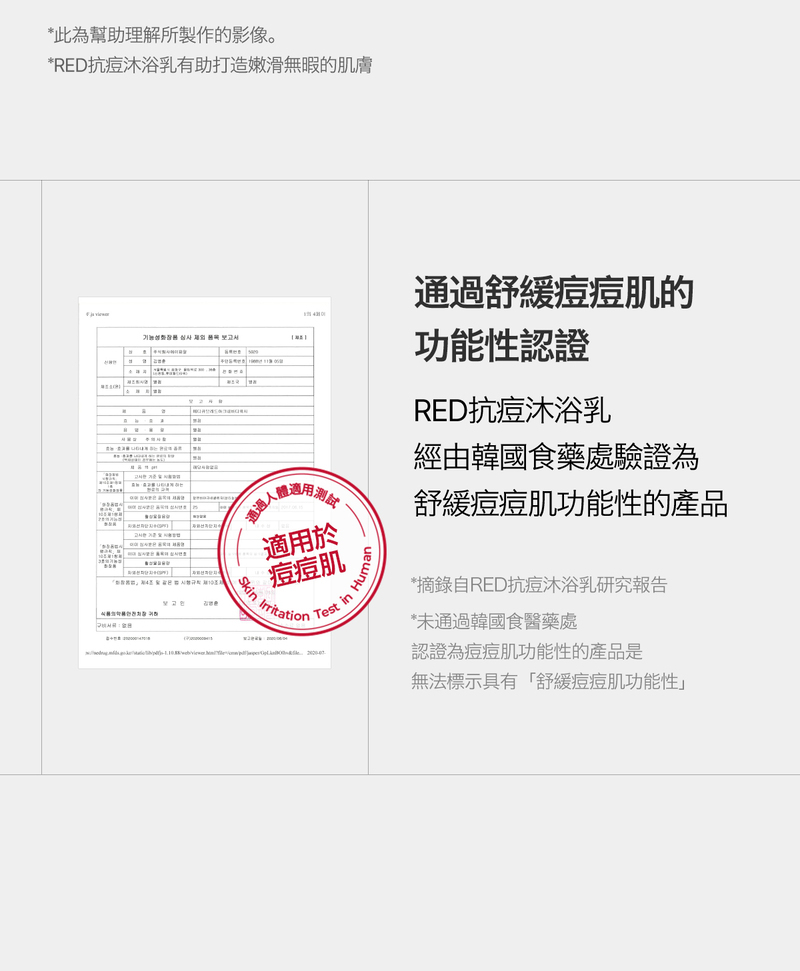 完成低刺激臨床測試,舒緩痘痘肌的功能性沐浴乳,