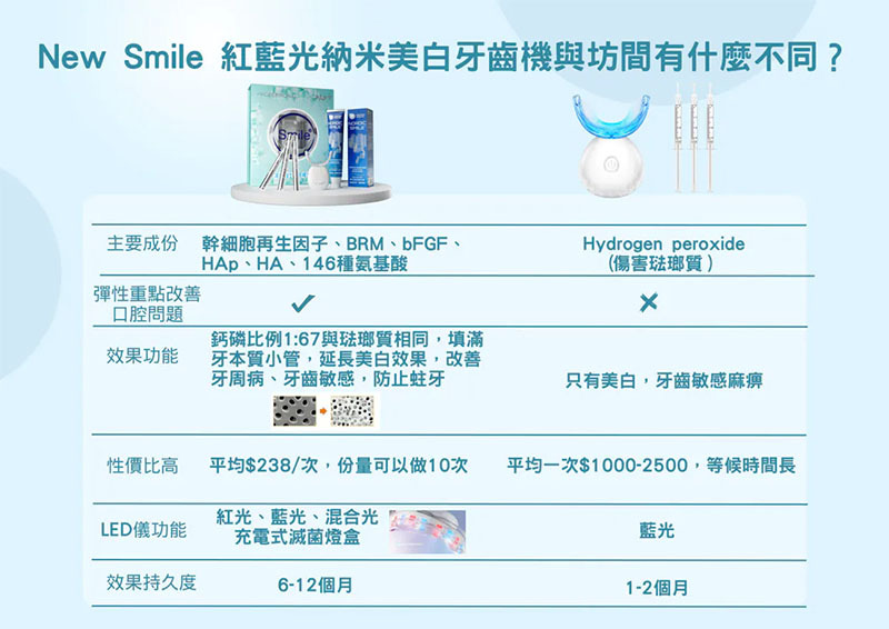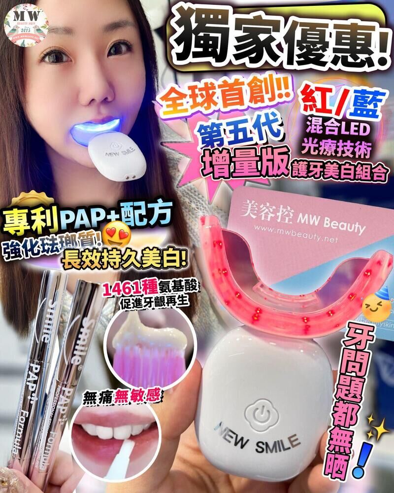 全新第五代New Smile PAP+納米護牙美白組合運用專利LED紅藍混合光療技術