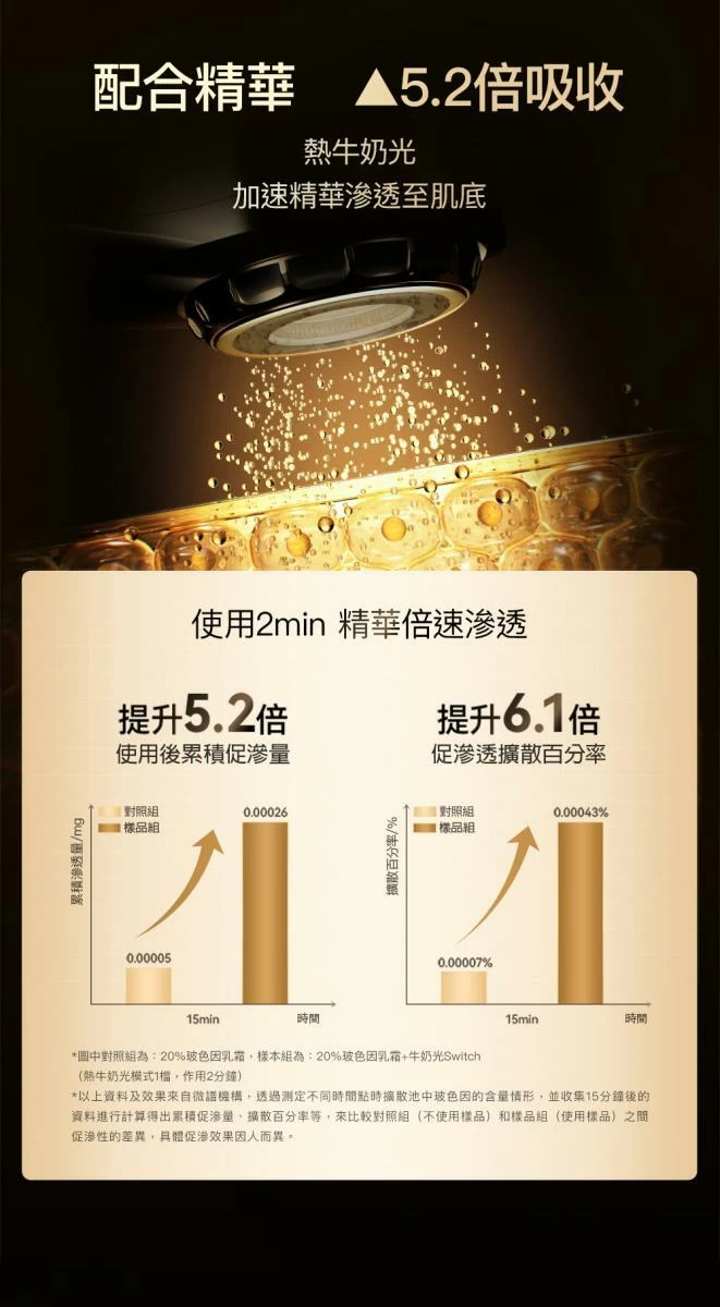 熱牛奶光熱力可打開吸收通道,脈衝能量讓護膚分子進入肌膚深層。