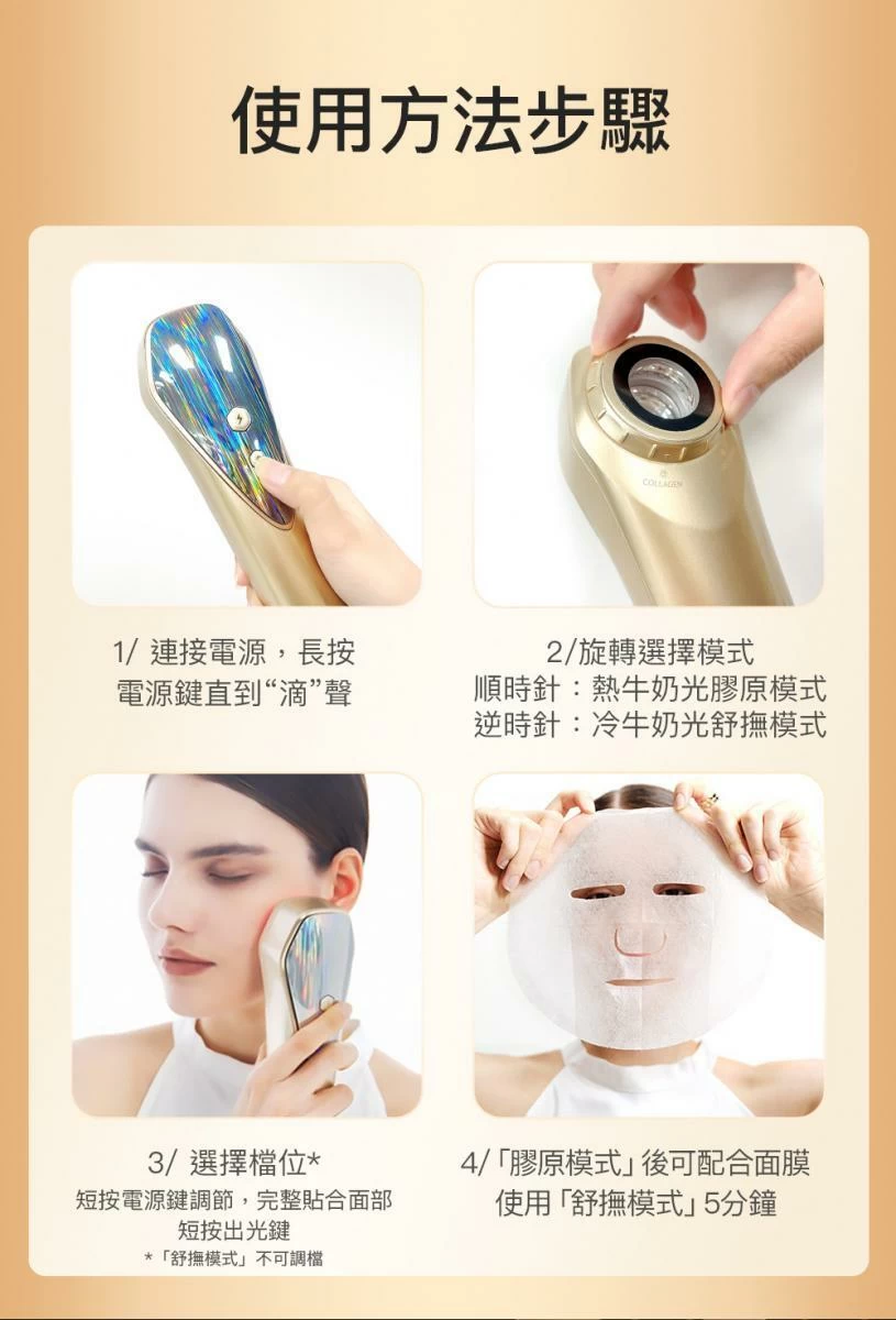 5. 新增冷熱紅黃光雙重模式,膠原提亮、紓撫袪紅,可改善敏感、強韌肌底,護膚更全面。