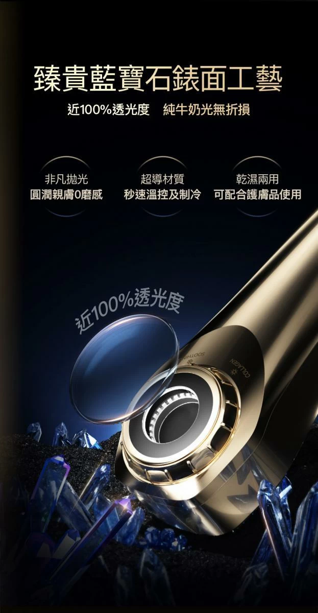 ✨藍寶石:近100%透光率,減少光能損失,快速控溫製冷,完成熱乳燈模式後可舒緩鎮靜。