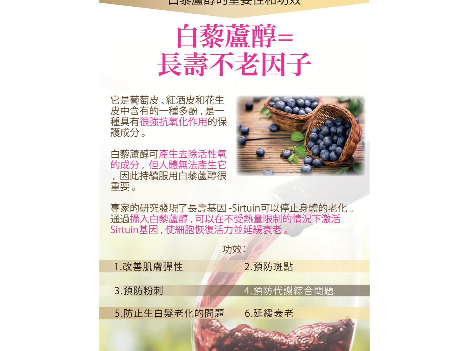 🔺添加抗衰老頂級成份-白藜蘆醇+PQQ