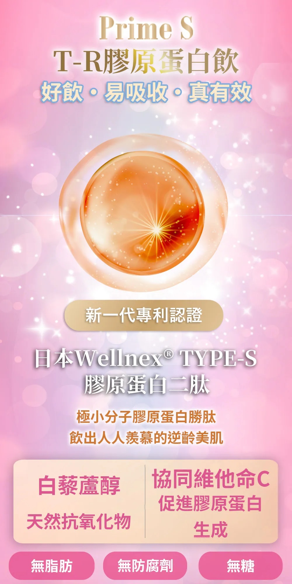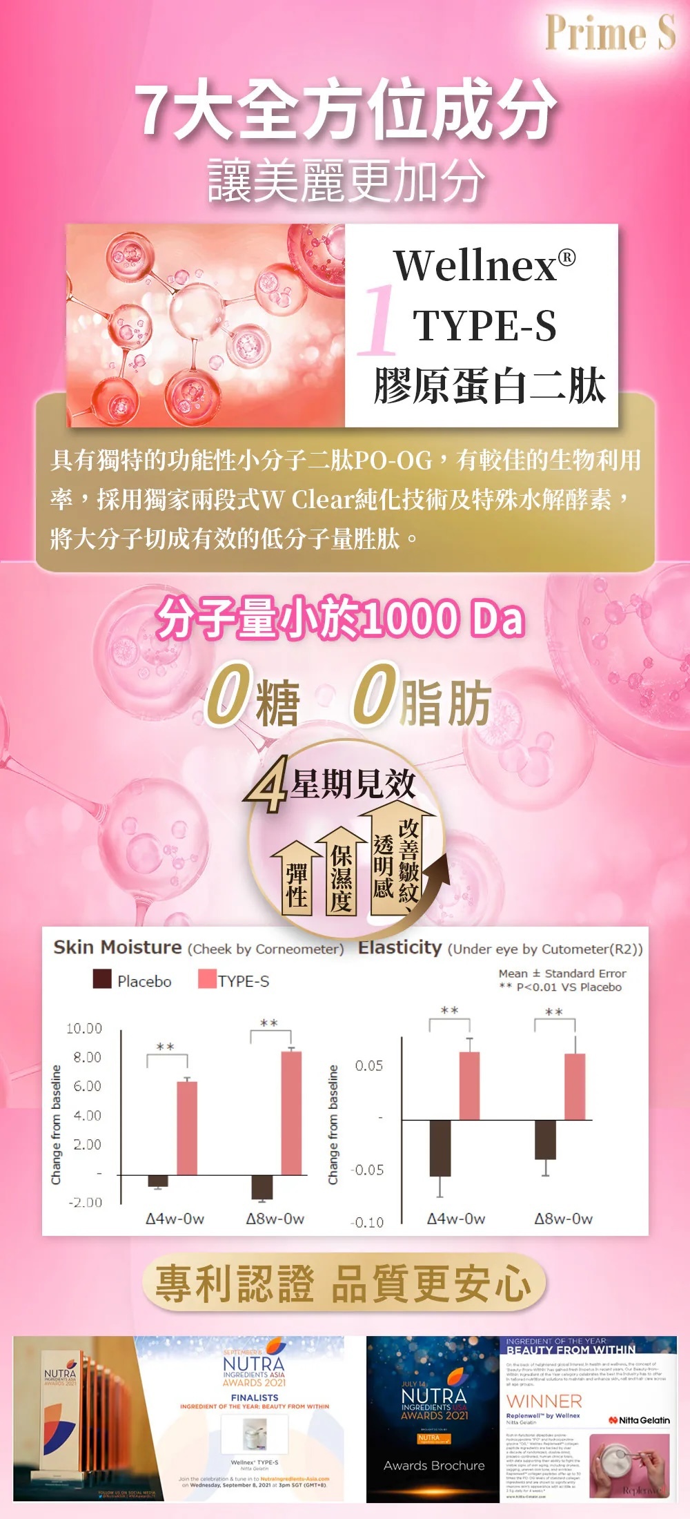 專利膠原蛋白二肽Wellnex® TYPE-S :高濃縮二肽PO·OG ,分子量僅1000Da,吸收力UP!