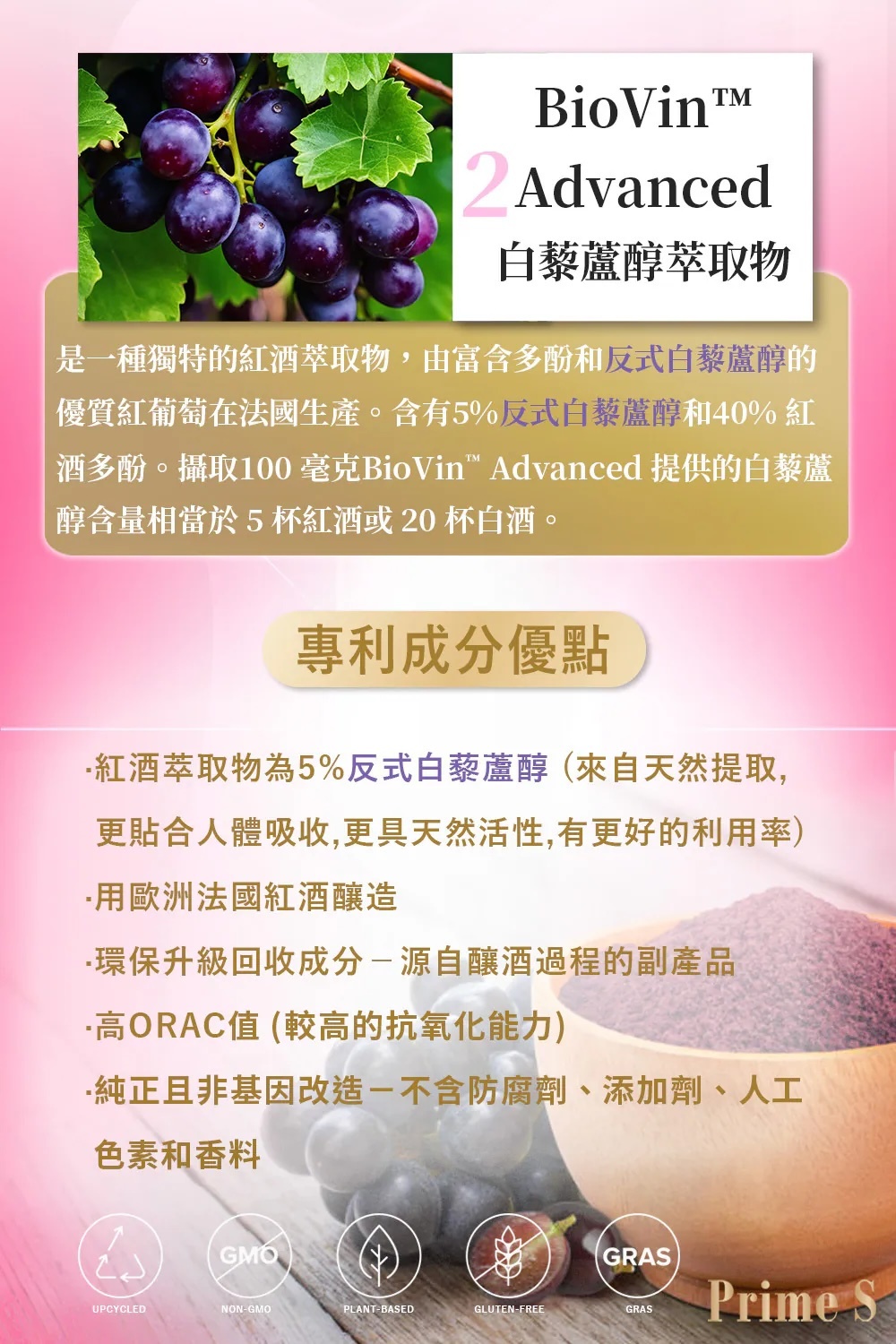 -專利BioVin™Advanced白藜蘆醇萃取物:含5%反式白藜蘆醇 (天然抗氧化,美白抗老,讓你肌膚年輕有活力)