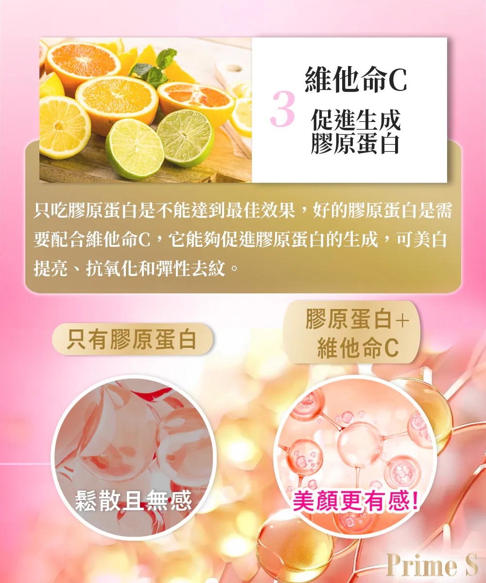 -維他命C:美白提亮,膠原蛋白吸收力加乘,抗氧化,讓肌膚彈性滿分。
