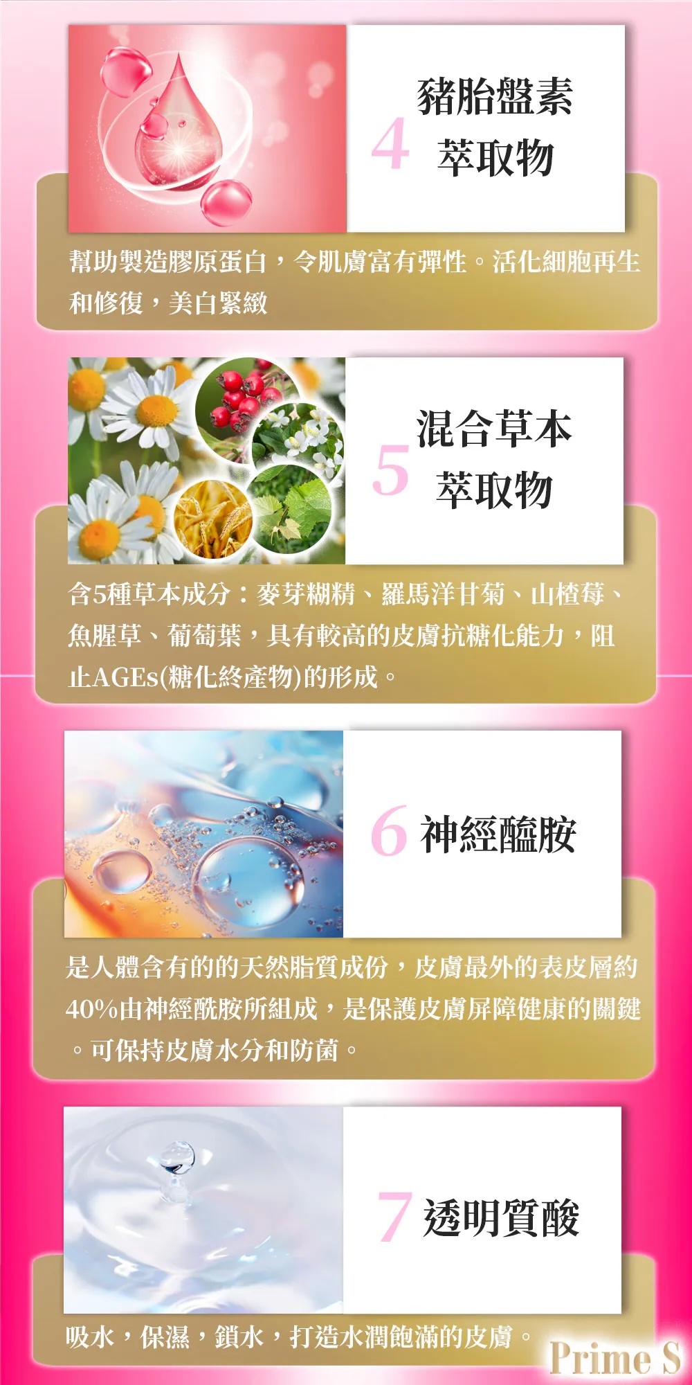 -豬胎盤素:活化細胞,修復再生,美白緊緻,讓你肌膚回春。