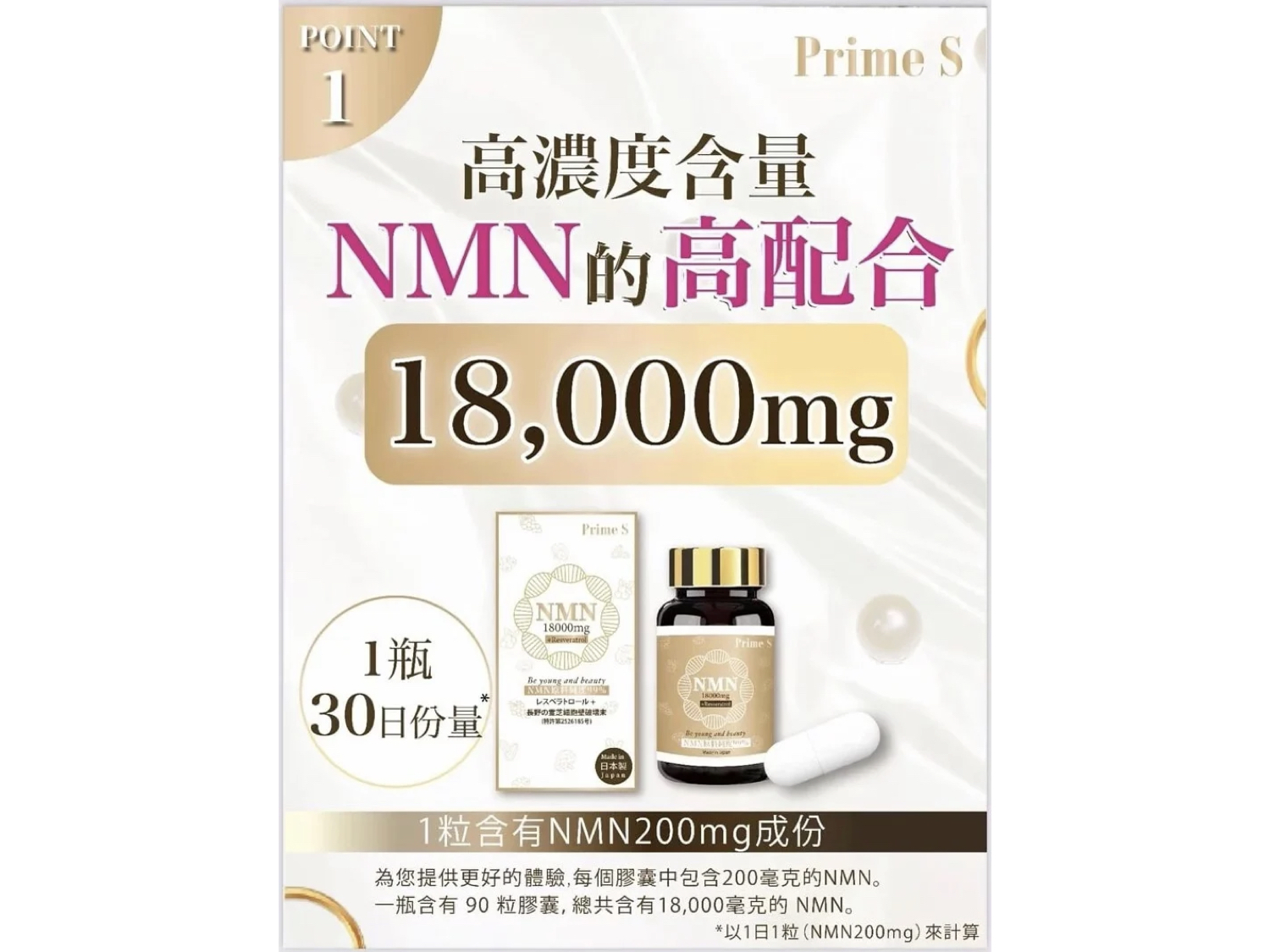 超高含量成份:嚴選特高含量 18,000mg,健康因子NAD+的前體物質,有助修復細胞,能直接提高體內NAD+水平,從而修復受損DNA、激活細胞年輕化,增強抵抗力、全面提高身體機能、抗衰老。