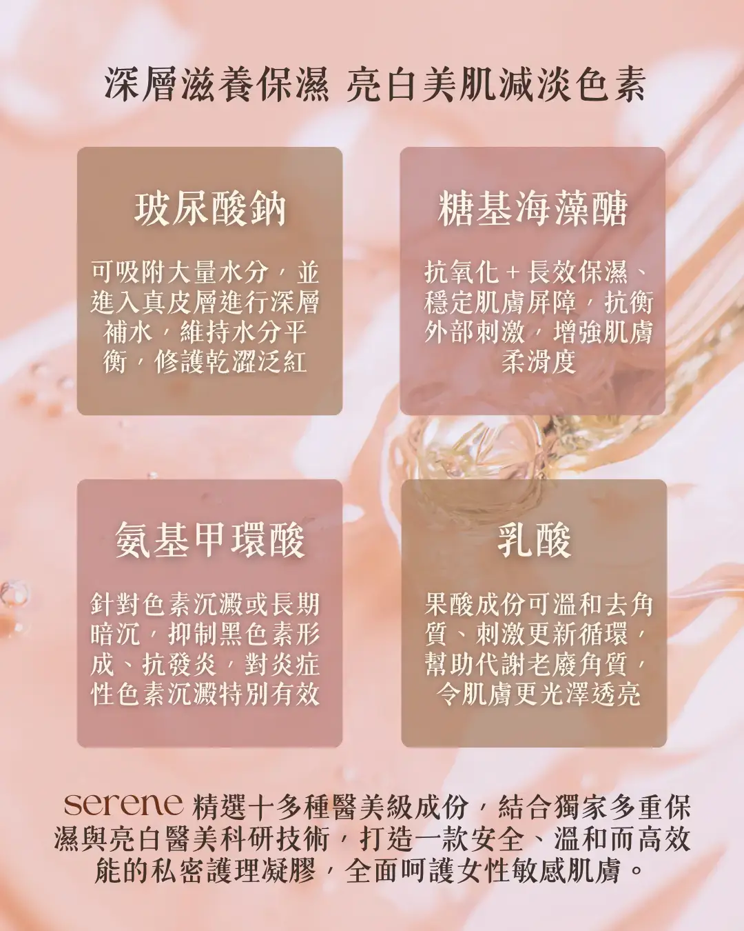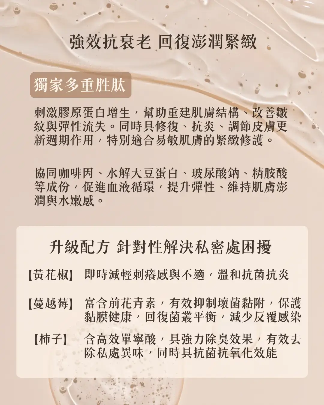 - 多種醫美級成分,從根本強化肌膚結構,提升彈性支撐力
