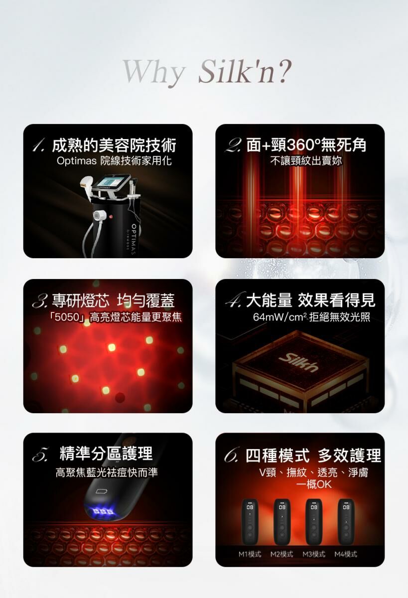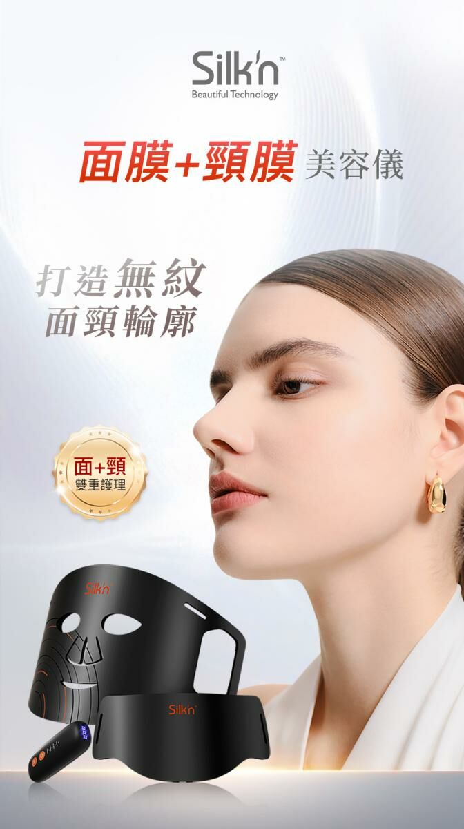 Silk'n面膜頸膜美容儀,結合紅光抗老與藍光袪痘技術,達致美容院級嫩膚美白效果,針對頸紋、雙下巴、皺紋等老化肌膚問題,超越市面上一般面膜儀的功效,打造零死角年輕膚。