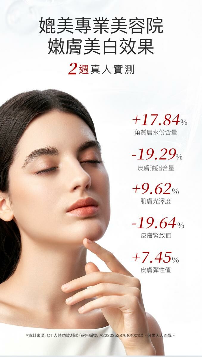 5.使用1次後即可見到提拉緊緻的效果,使用4週後皺紋改善,肌膚光澤度明顯提升。