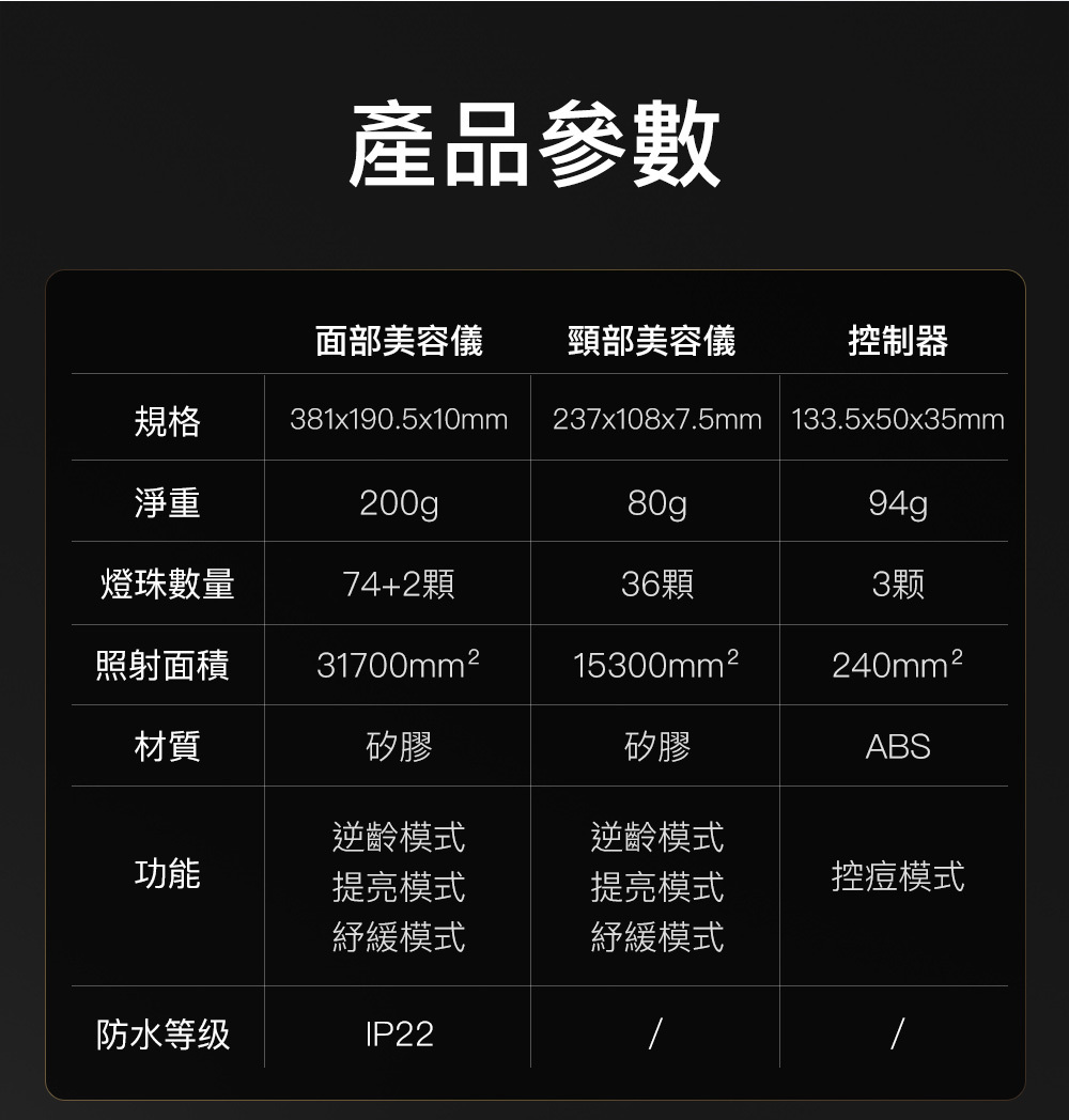 4.設有112顆高能量燈芯,360°貼膚,全面改善肌膚問題。