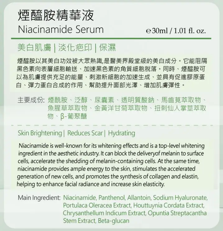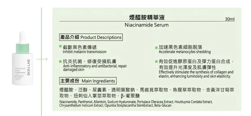 煙醯胺是醫美界殿堂級美白成份🉐 阻隔黑色素向表皮層細胞輸送