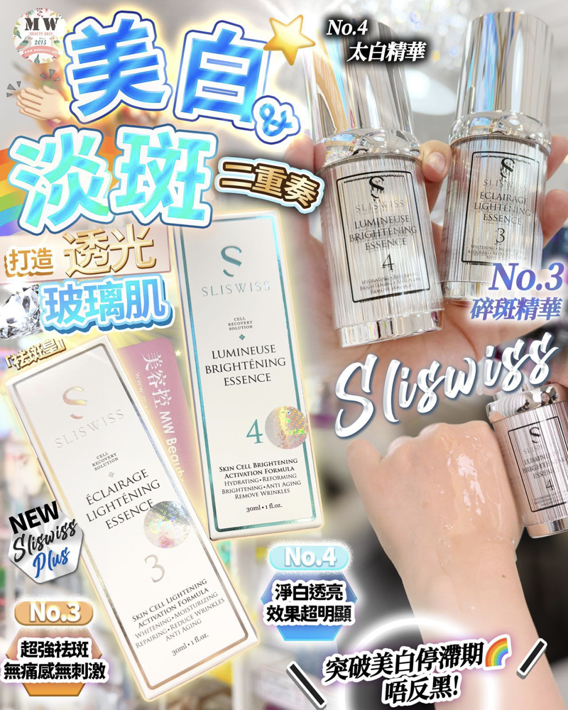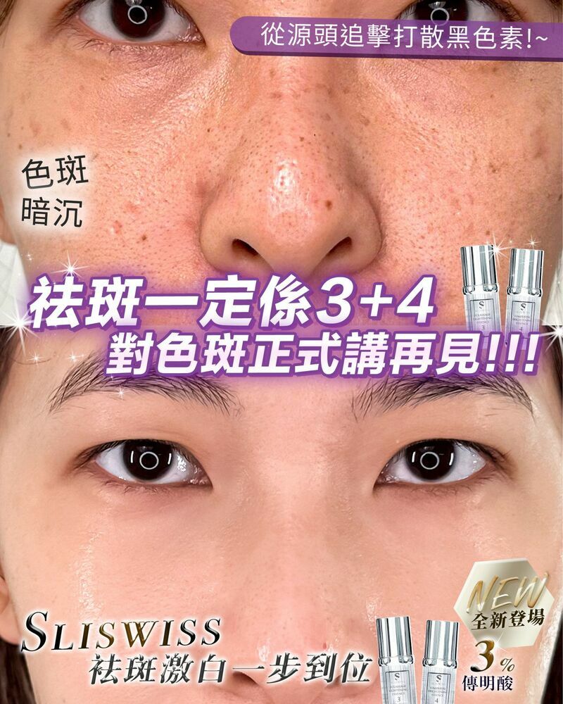 俗語有話「一白遮三醜」,Sliswiss 3號袪斑皇精華,內含傳明酸高達3%