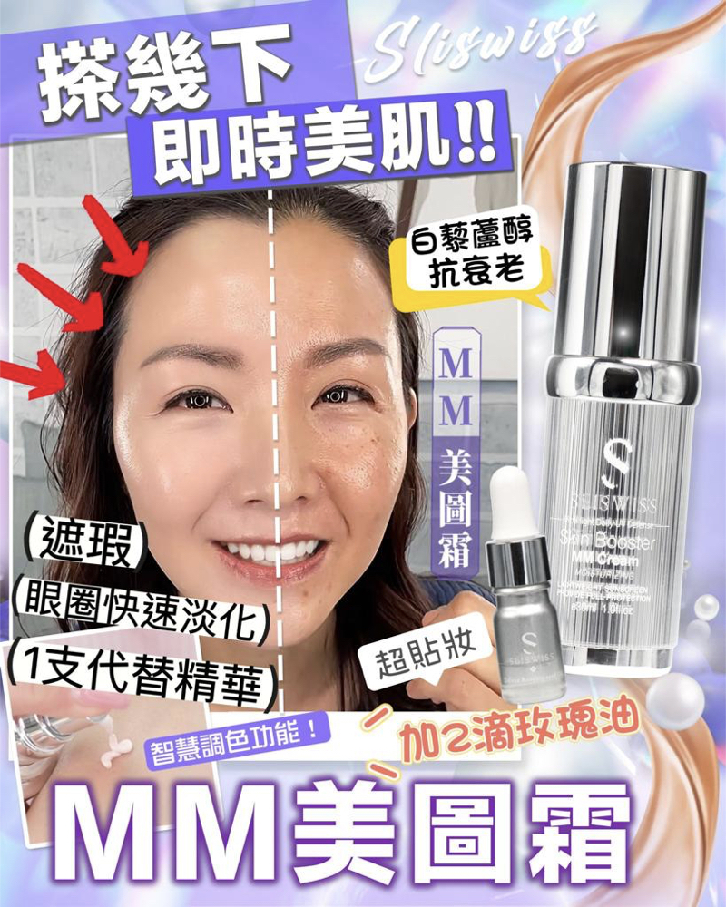 Sliswiss MM cream 素顏防曬美圖霜30ml (送玫瑰精華油+ 美妝蛋)x1