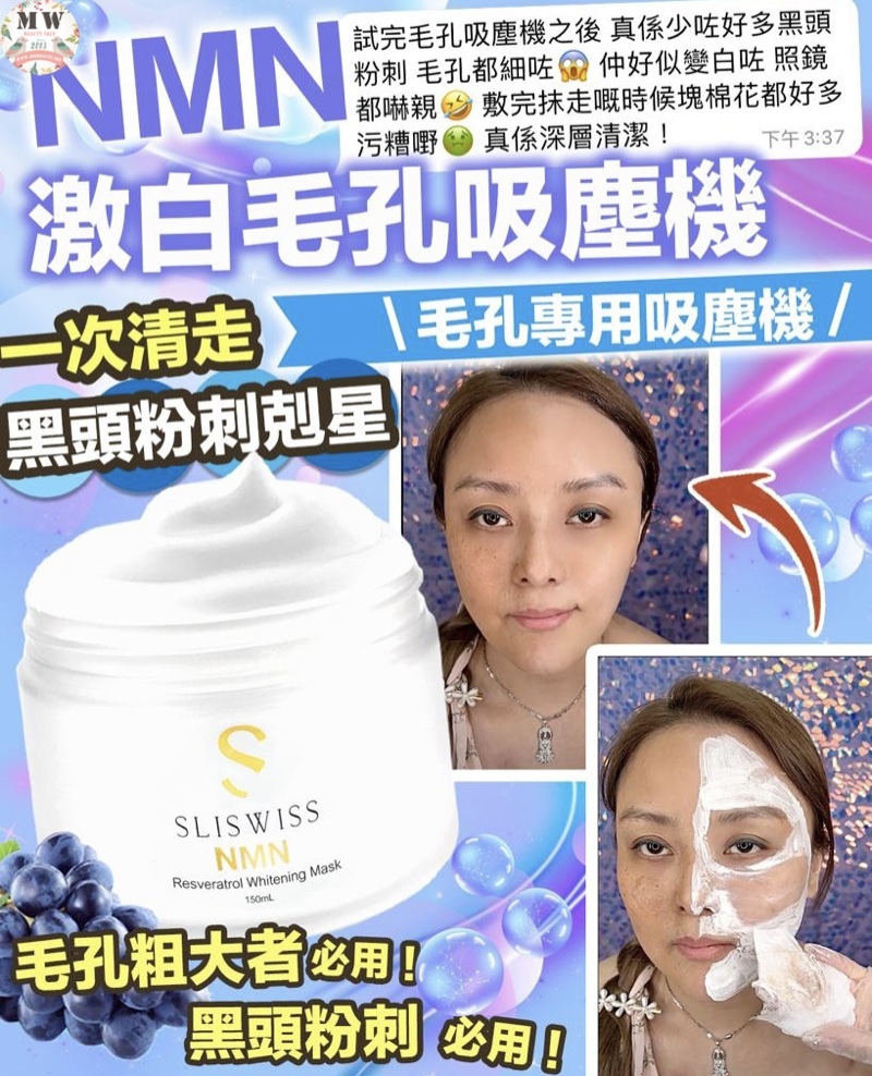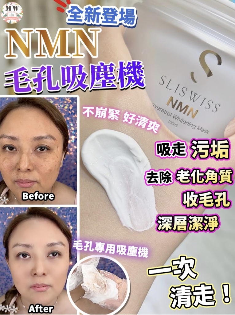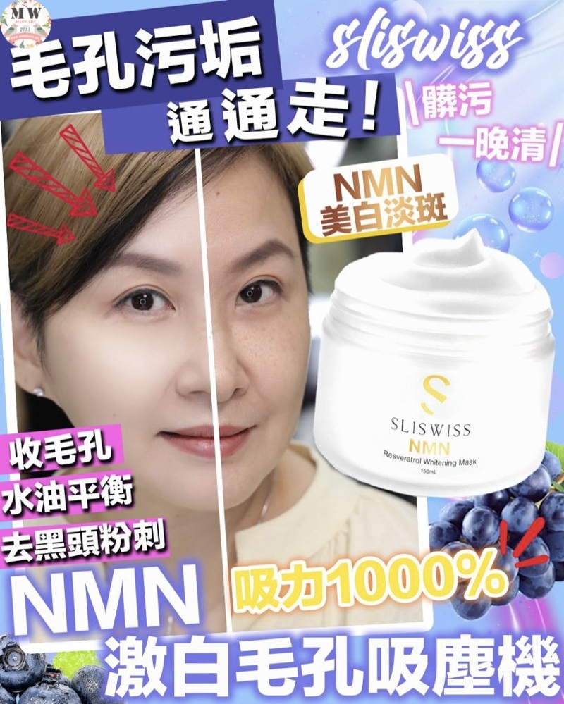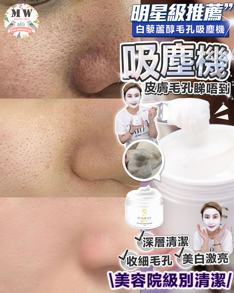 SLISWISS最新潔淨神器,白藜蘆醇毛孔吸塵面膜,幫你將污垢好似卡數咁一筆清,潔淨如白紙收細毛孔。