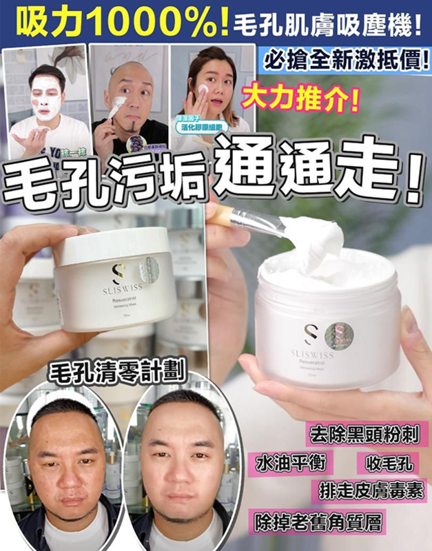 💃🏻💃🏻隆重登場🔜✨SLISWISS最新潔淨神器🌈白藜蘆醇毛孔吸塵面膜