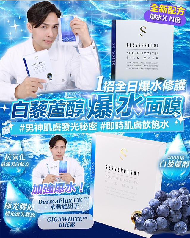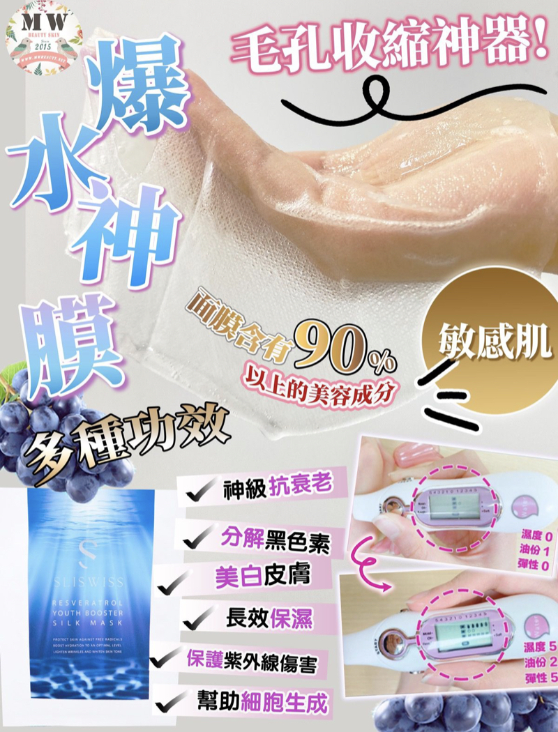 Sliswiss 白藜蘆醇爆水面膜 X 10片