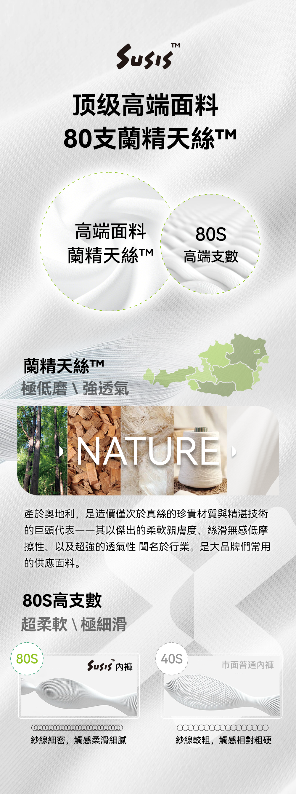 2.80支蘭精天絲、超細紗線、柔軟舒適。