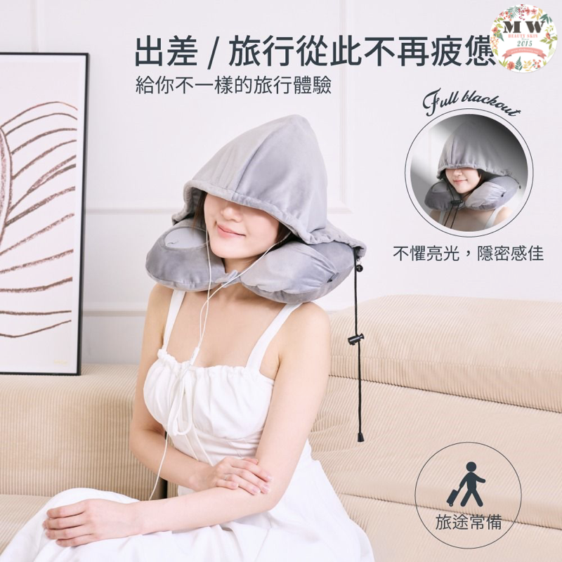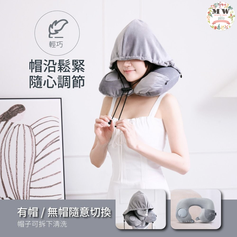 溫熱充氣連帽頸枕,為您的旅途增添溫暖與舒適!