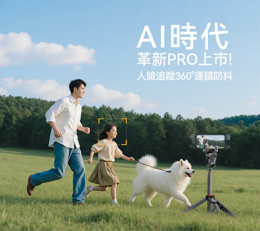 AI自定位技術搭配智能防抖動雲台,支持360°無限位旋轉,俯仰前後軸270°旋轉,消除機械限位帶來的卡頓感,適合拍攝創意轉場、環繞視角等專業畫面,降低手動運鏡門檻。